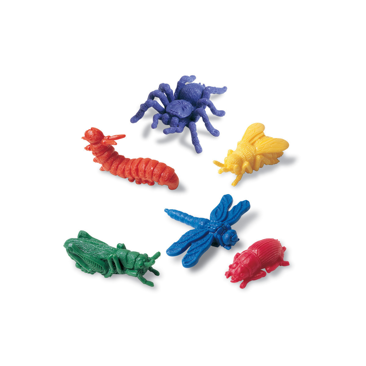 These colorful creepy, crawly counters turn sorting and counting activities into fun adventures. Set of 72 includes grasshopper, bumblebee, beetle, spider, dragonfly and caterpillar. Soft rubber counters come in six colors and are packaged in a reusable plastic tub. Suggested activities included