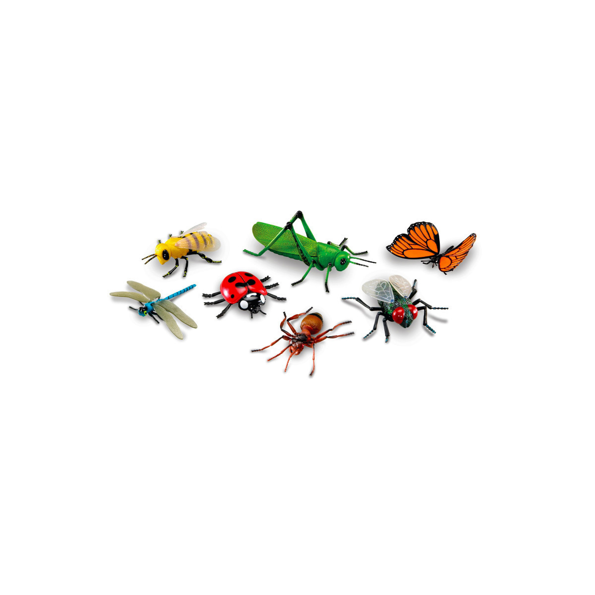 Realistically detailed animals designed for little hands and big imaginations! Figures invite imaginative play and are perfect for vocabulary development. Activity guide includes facts about each animal and early science discussion starters. Made of durable, non-toxic plastic. Includes: Fly, Ant, Bee, Ladybug, Grasshopper, Butterfly, Dragonfly. Largest animal (butterfly) measures 8"L x 5"H. Grades: PreK +