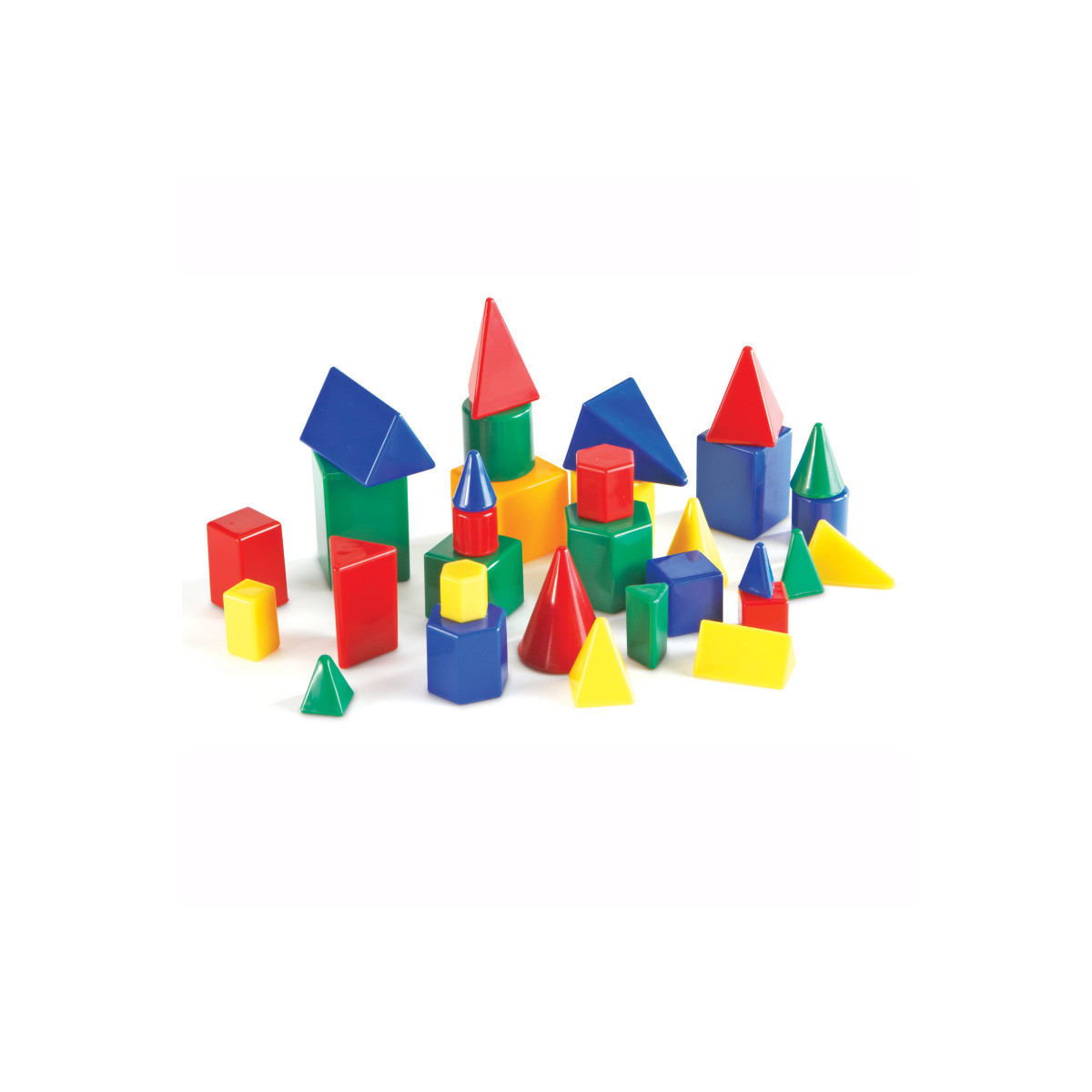 It just got easier to teach shapes, sizes and relationships with these colorful, plastic geometric pieces. Set of 32 includes 4 sizes of 8 shapes: triangular prism, cube, cone, cylinder, rectangular prism, hexagonal prism, triangular pyramid and square pyramid. Perfect for individual or small group use, each shape measures from 1/2" to 13/4". Includes Teaching Guide.