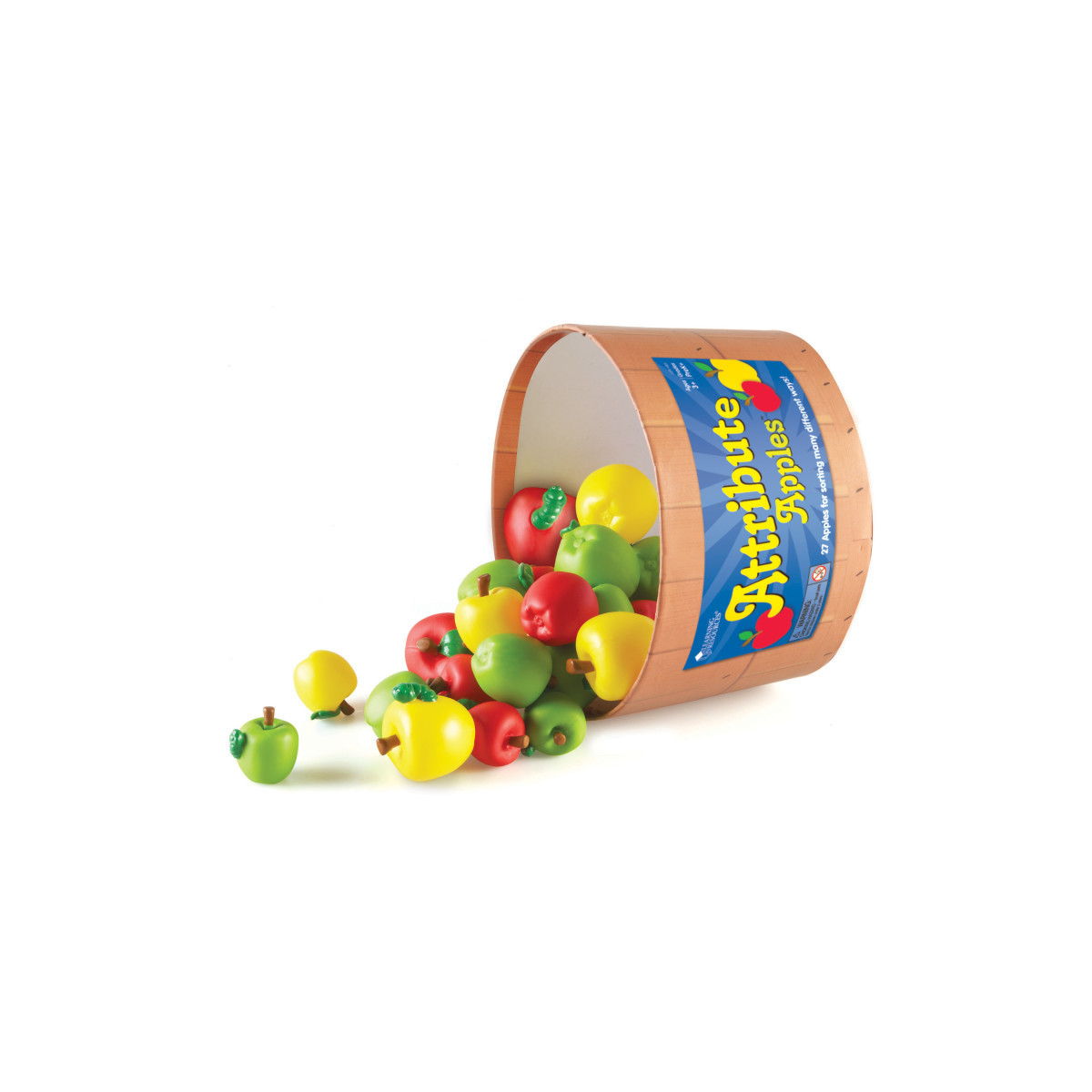 Develop pincer and whole hand grasp by picking up, turning, and studying the apples. Sort, classify, and compare apples by 5 attributes including size, color, and physical features (stem, leaf, worm). Includes activity guide featuring suggested uses of Venn diagrams for higher-order thinking skills. 27-piece set.