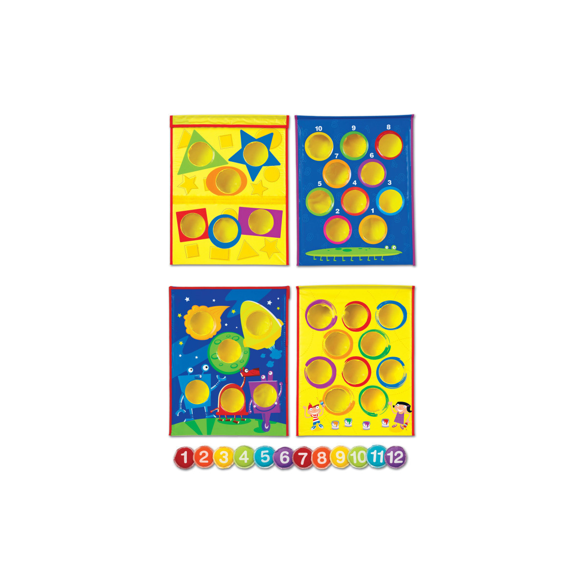 Get the party started with 4 fun games in 1! Invites players to either create their own game or match colors, shapes or numbers by tossing bean bags through holes. Keeps kids healthy and challenges gross motor skills through active play. Hook-and-loop fasteners make it quick and easy to set up and change games.