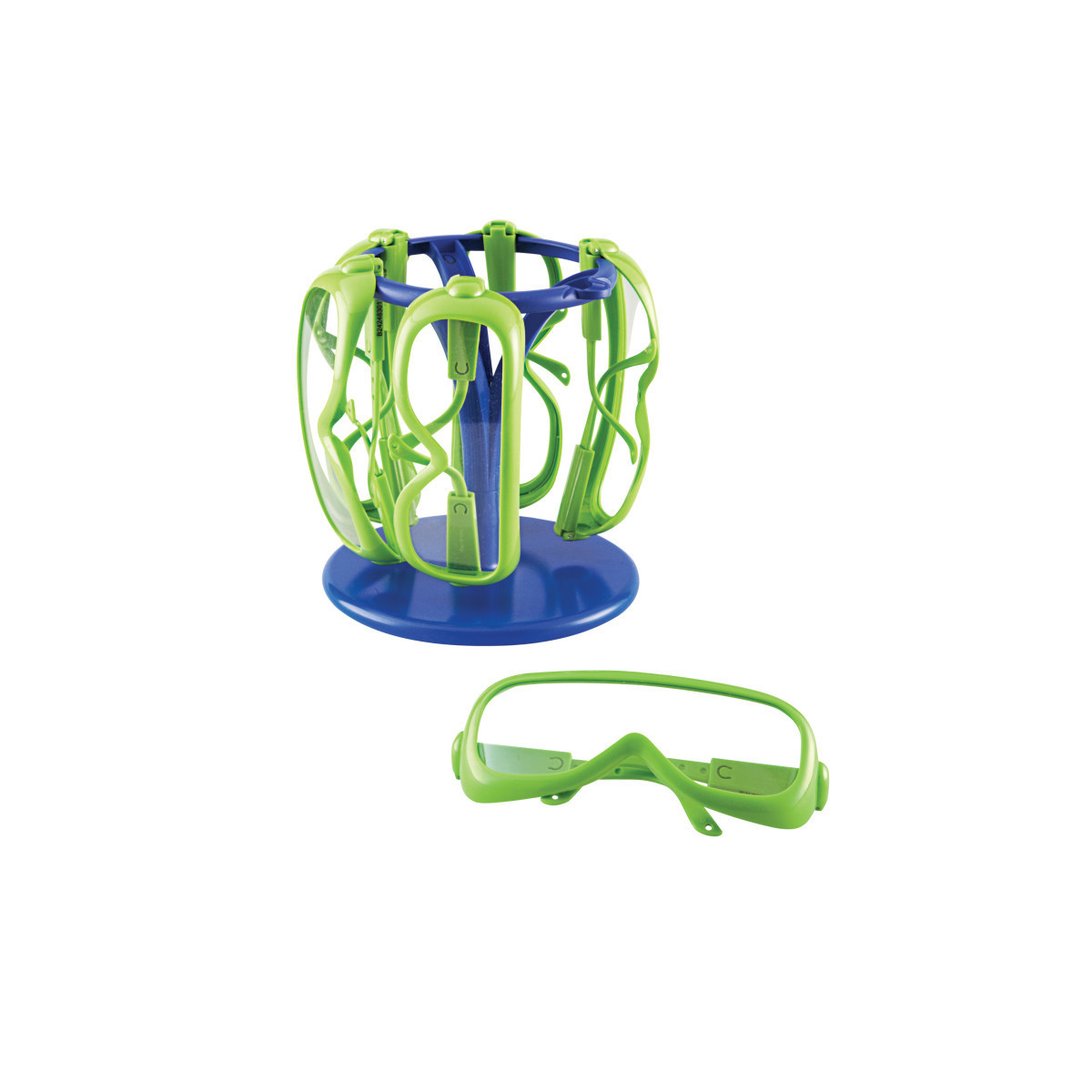 Make safety a habit with these functional, kid-friendly glasses. No uncomfortable straps! Features adjustable arms to fit easily over children's eyeglasses. Meets high-impact requirements of ANSI Z87.1 safety standards. Includes: 6 glasses, 1 stand. Grades: PreK +