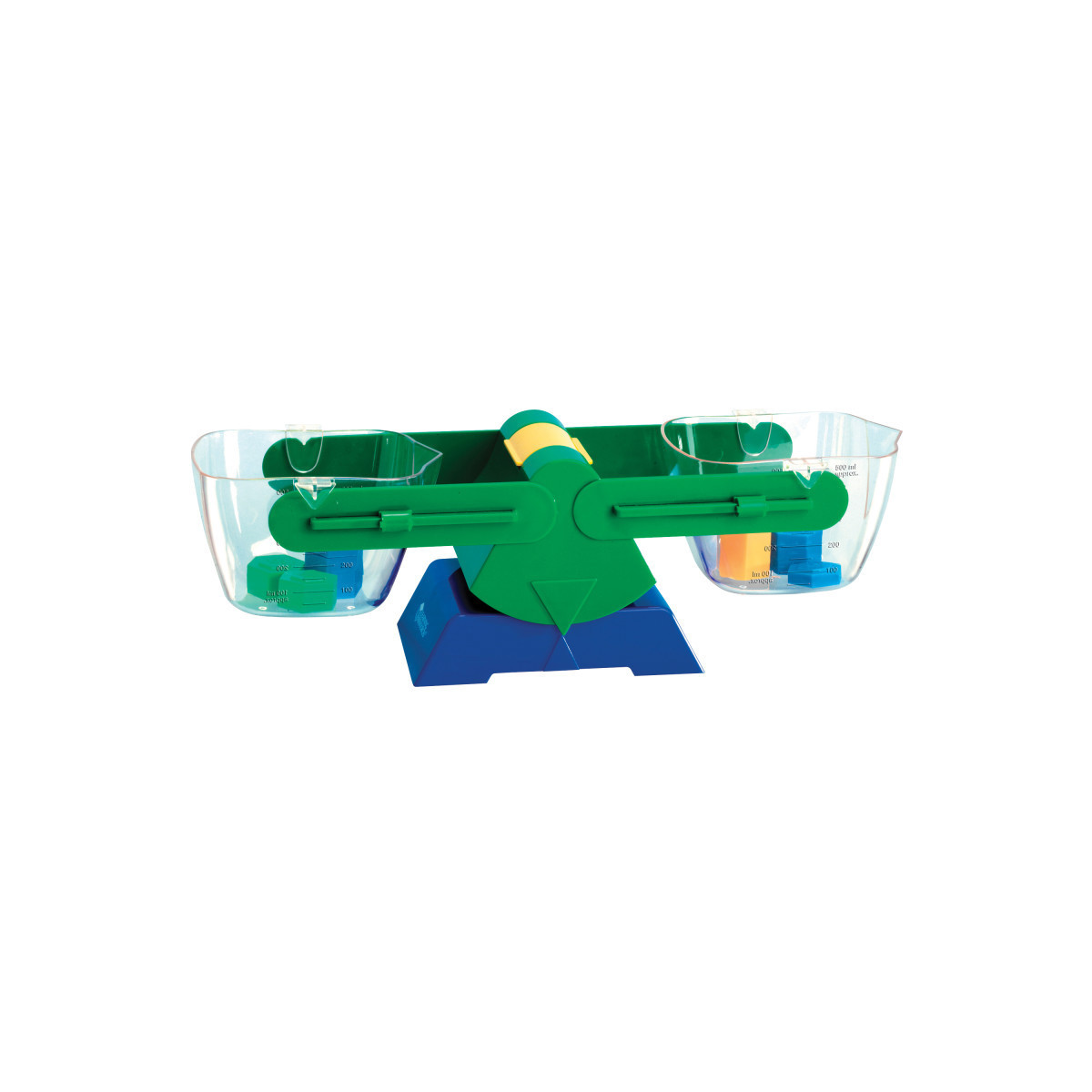Students learn weight and measurement hands on with this super-durable plastic balance. Removable, easy-to-grip, clear 1/2 liter buckets make it easy for small hands to pour and measure. Compensator with sensitivity to one gram. Measures 16"L x 5.75"W x 5"H.
