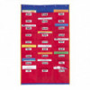Organize your classroom and your students. Make collecting homework and sending notes home a breeze with this bright red and blue storage pocket organizer. Hangs easily from a bulletin board or our pocket chart stand. Made of sturdy, washable vinyl, the Organization Station® is 28.25"W x 45"H with 27 pockets that each measure 9"W x 8.5"H and come complete with name tags. Books and worksheets displayed, not included.