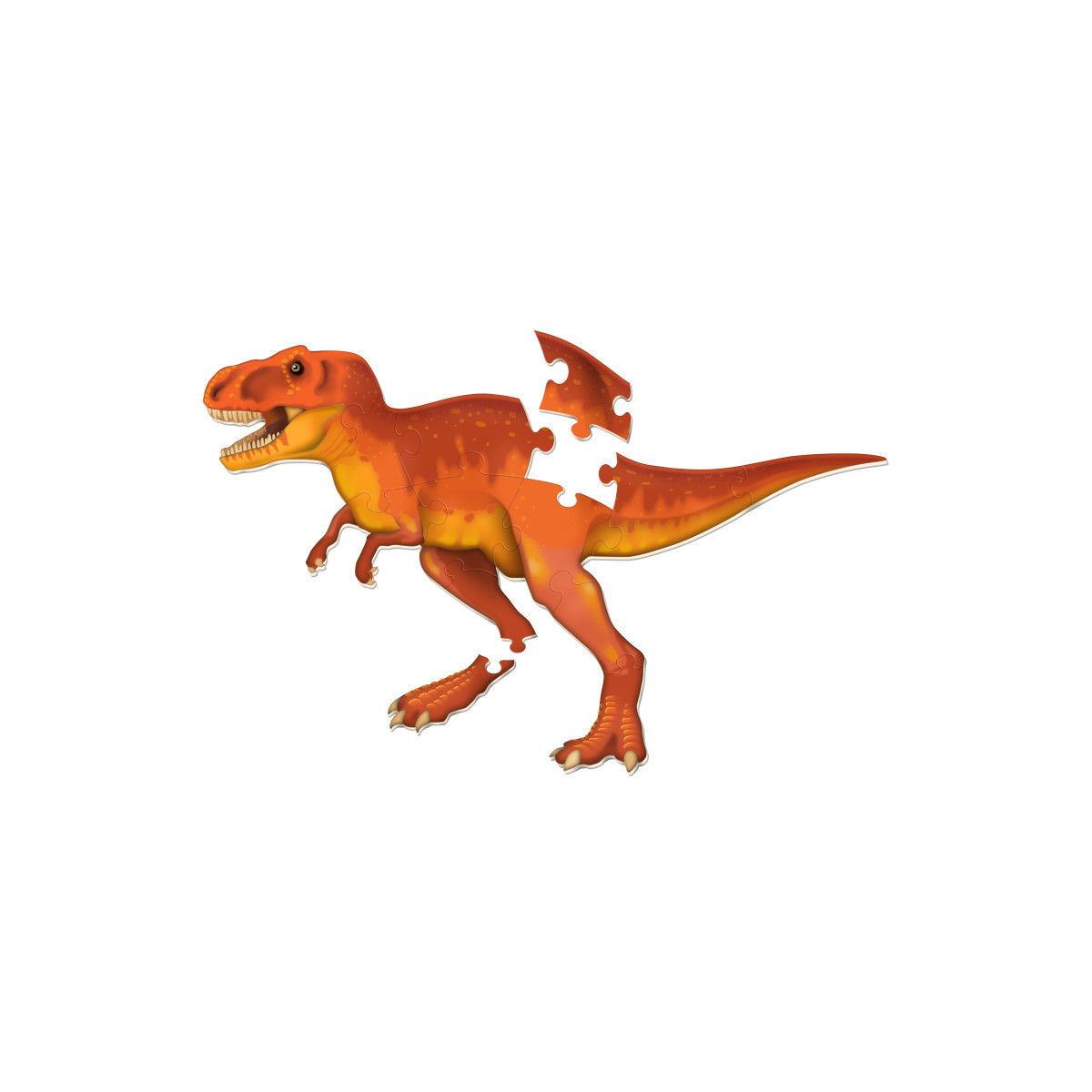 It's a puzzle and a science lesson all in one! Help your little learners develop an early love of science with this gigantic 13-piece puzzle. The big, soft foam pieces are perfect for small hands and safe for home or classroom floors. The big, bright T-Rex is on one side, with his skeleton on the other side, so kids can keep finding new ways to play and learn. Measures 4'L x 2'H when complete.