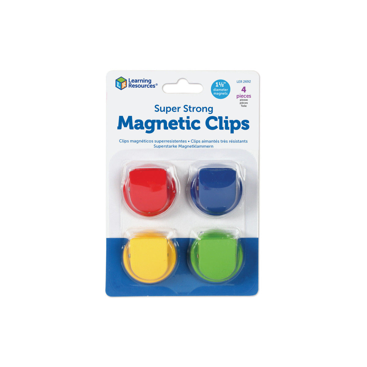 Hold folders, student portfolios or large stacks of homework-up to 50 pages per clip! Brightly colored - use on whiteboards, file cabinets or any magnetic surface. Measure 1.5'' in diameter. Each pack includes 4 clips.