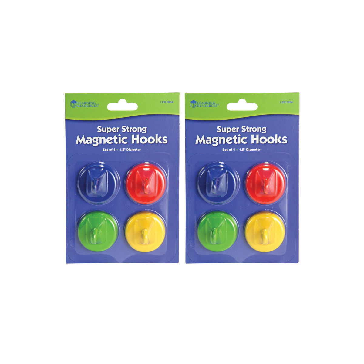 Super Strong Magnetic Hooks lend you a strong hand by holding up to 20 pounds each! Set of 4 bright colors- red, blue, green and yellow. Measures 1 1/2" in diameter. Sold as 2 packs for a total of 8 hooks.