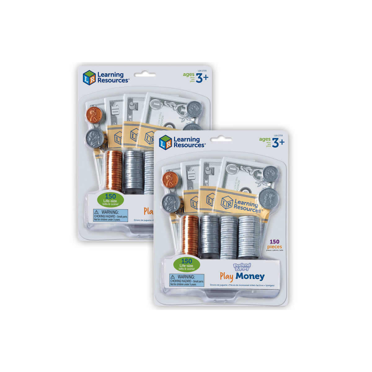 Sold as 2 complete sets, each individual set includes 150 pieces of actual-size bills and authentically detailed coins