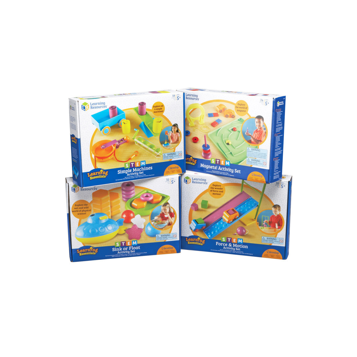 This comprehensive bundle includes four of our finest STEM products including the Force & Motion Activity Set, Simple Machines Activity Set, Magnets! Activity Set, and Sink or Float Activity Set. Explore the wonders of magnetism and engineering, why things sink and float, all 6 simple machines, and the science of "how things go" with colorful, engaging tools and hands-on activities and experiments. The perfect introduction to building key Science, Technology, Engineering, and Math skills. All sets include a comprehensive Activity Guide with reproducible materials. Grades K+/Ages 5+