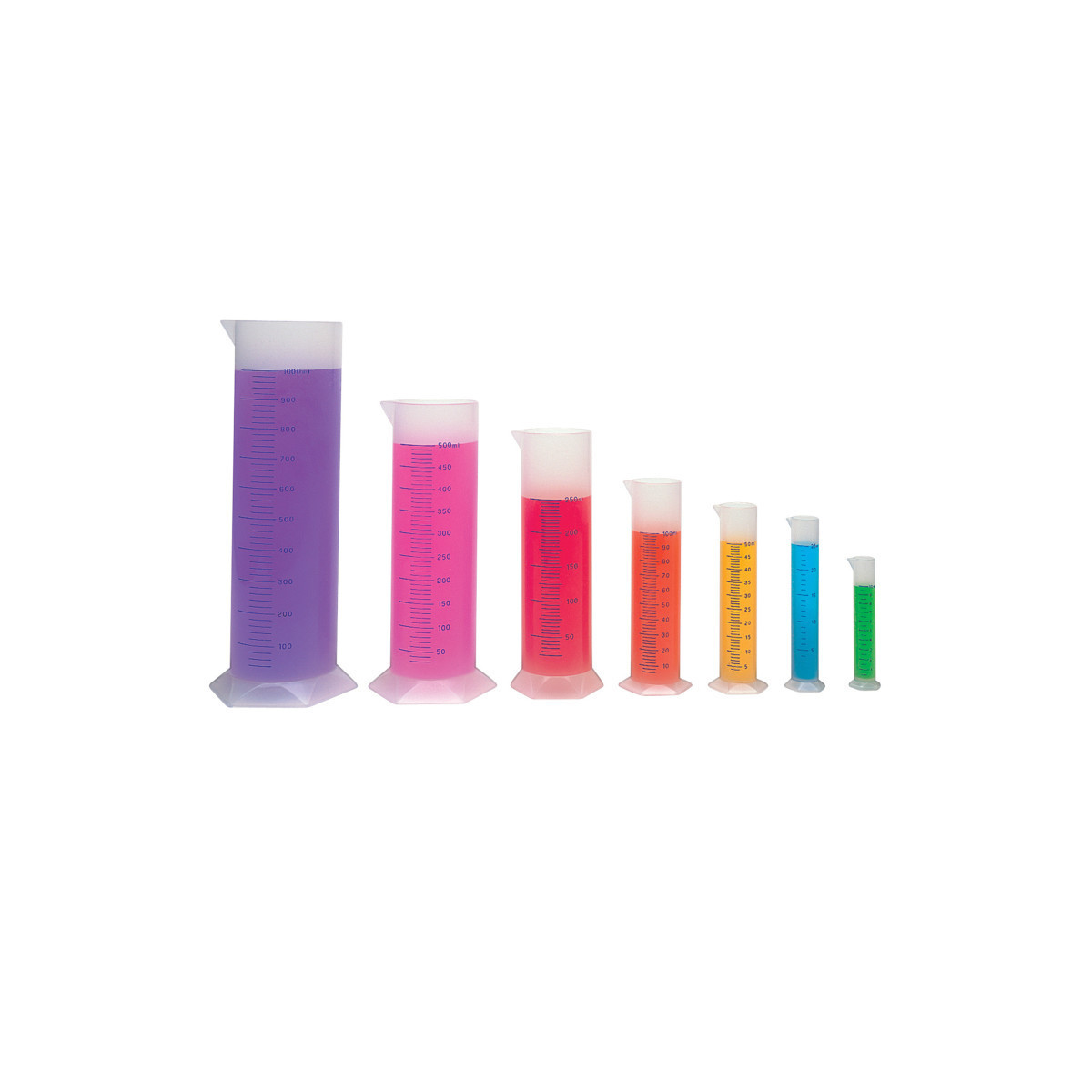 A necessity for any science lab, these durable polypropylene cylinders come in calibrations of 10, 25, 50, 100, 250, 500 and 1000 milliliters for volume experiments and beyond. Autoclavable