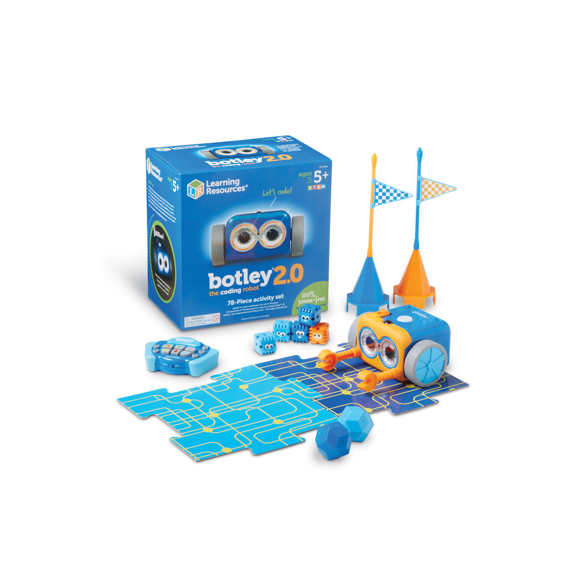 Meet Botley 2.0 The Coding Robot, our smartest coding robot yet! The next generation of our Toy of the Year winner Botley the Coding Robot, Botley 2.0 helps kids as young as 5 learn to code through 100% screen-free play. Botley 2.0 knows multiple ways to code right out of the box—code by color, make Botley move in six directions, and even put on a light show! Discover Botley 2.0's 16 fun interactions—transform Botley into a train, police car, ghost, and more! You can even test your memory with the lights and sounds of a game of Botley Says! Your little coders can build coding sequences of up to 150 steps, and go on adventures with a built-in sensor that lights up Botley 2.0 in the dark! With the help of Botley's 78-piece activity set, kids will be solving their first coding and STEM challenges in just minutes!