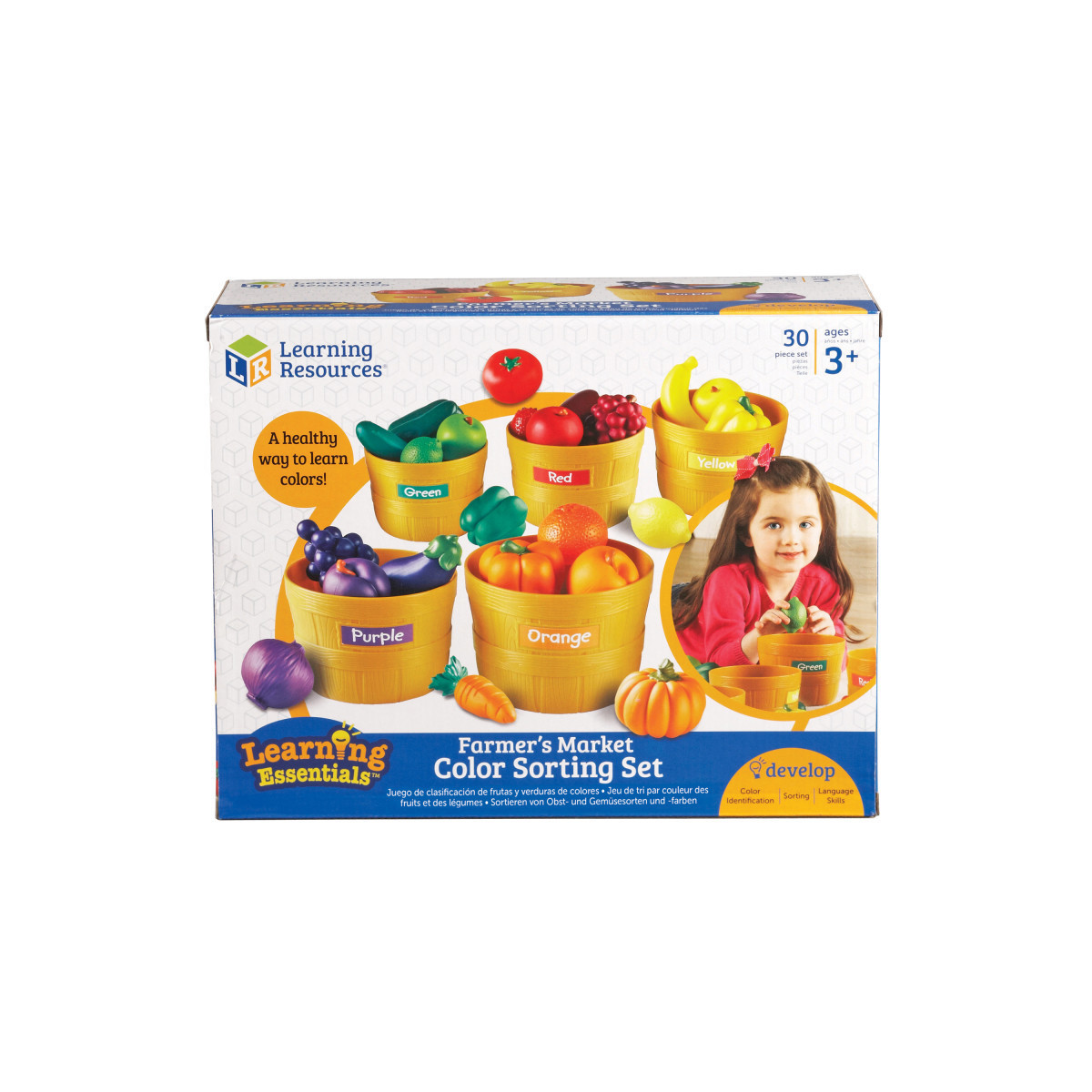 - Develops color recognition and sorting skills with bushels of realistic, relationally sized produce