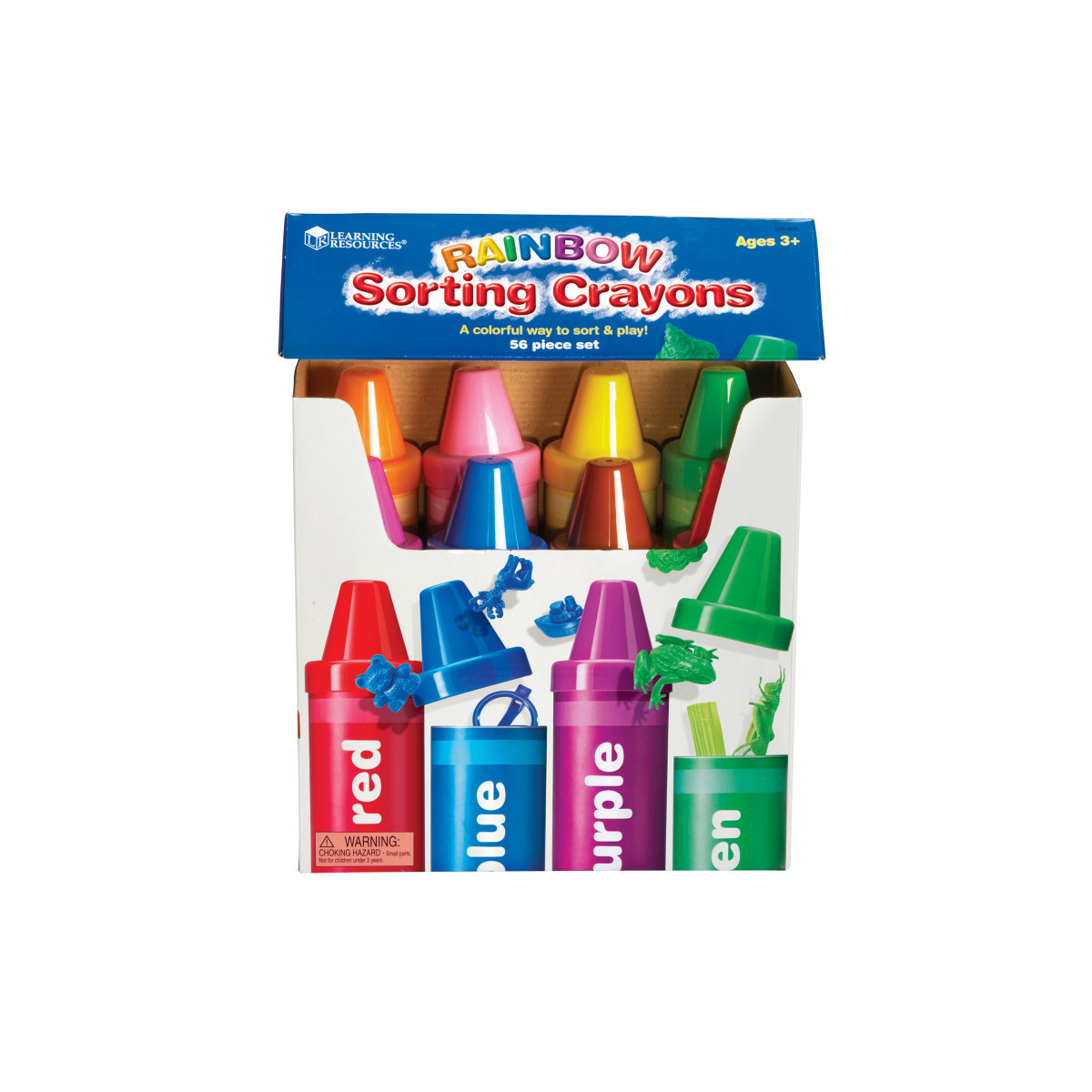 A rainbow of play possibilities comes packed inside these giant crayons. Crayons invite children to peek inside each crayon and discover different color-coded figurines for matching, sorting and imaginative play. Includes: 8 cardboard crayons with plastic lids — brown, red, yellow, green, purple, pink, blue, orange. 48 manipulatives total. Storage box. Each crayon measures 9.5"L x 2.5"D. Grades: PreK+. Common Core State Standards Alignment: Counting & Cardinality, Measurement & Data, Operations & Algebraic Thinking. Learning Style: Visual, Tactile. Skill Development: Basic Concepts — Help students to identify the names of colors and objects, learning about quantities, creating sequences, and understanding spatial relationships such as next to, behind, and in front of. Math - An ideal way to introduce sorting and grouping. Add more fun by counting as each piece is dropped into a crayon tube or create patterns with the objects to introduce AB patterning. Organization — Forty-eight objects separated into 8 colored crayon tubes introduce early organizational skills. Clean up becomes part of the activity by putting all of the objects into their respective crayons.