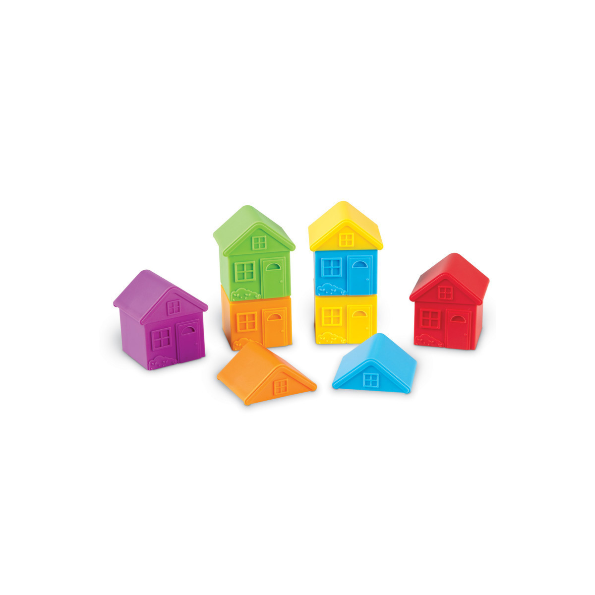 Give your All About Me Family Counters a home! Kids can discover a whole neighborhood's worth of new skills with the All About Me Sort & Match Houses. Designed for use with our All About Me Family Counters, this set's 6 colorful two-piece sorting house toys add a fun imaginative twist to learning sorting, matching, and color recognition skills. Sort your toy people by shape, count them up, or match them by color with the corresponding house—there are multiple ways to learn and play! When it's time for your play figures to head home, each house features a pop-on, pop-off roof that lets kids store their miniature families in a safe place for the night. The All About Me Sort & Match Houses also help kids talk about their own houses and the family fun that happens within. Kids can even stack the houses, creating multi-story buildings that reflect life in apartment buildings or larger houses!