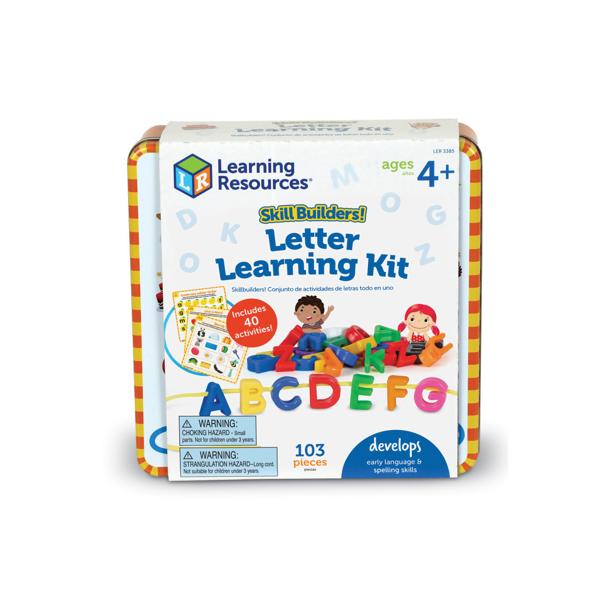 Looking for an easy way to help kids learn language skills? Introduce them to hands-on ABC learning toys and school-ready learning activities in one compact package! With 72 lacing letters and 40 workbook-style activities, this set helps kids learn phonics, spelling, sight words, and more! Best of all, the hands-on lacing letters also strengthen fine motor skills. How does this spelling toy help kids learn? Use the letters to make your own reading games, phonics games, and more! Made from durable plastic, the Skill Builders! Letter Learning Kit set comes with a carrying case for easy cleanup or on-the-go play, and makes an easy addition to homeschool supplies and speech therapy toys for toddlers. Age 4+ | Grade PreK+