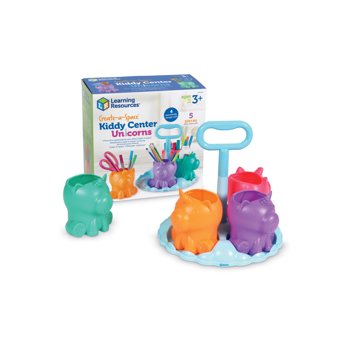 These fantastical unicorns are ready to make cleanup fun! The latest entry in our Create-a-Space Kiddy Center series features 4 removable unicorn storage cups and a portable carrier base with easy-grip handle for on-the-go organization. Makes great room decor! Assembled tray measures 9.5" x 9.5" x 9.5".