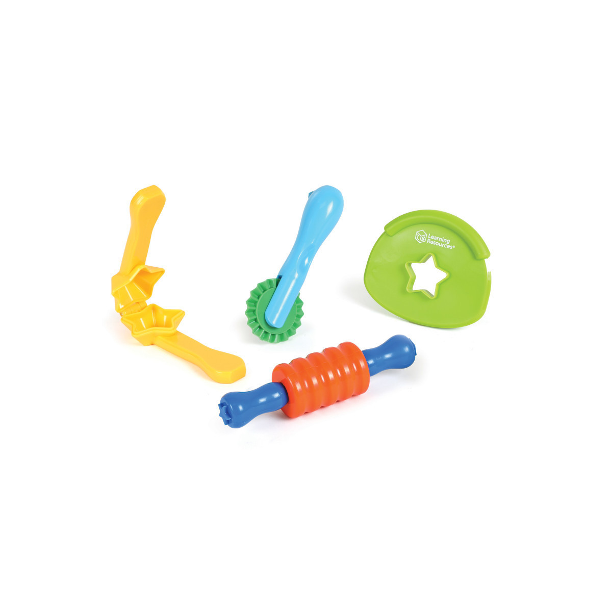 Looking for an easy way to help kids learn early fine motor skills? Check out this set of 4 toddler sensory toys that's ready to play with dough and clay! Kids can smoosh with the stamp roller, make shapes with the star press, cut clay with the dough slicer, and design your own shapes with the cutter wheel. How do these sensory tools help kids learn? Each sensory tool strengthens a different fine motor motion—push, squeeze, roll, and more! Best of all, these durable, easy-to-clean toddler sensory toys are ready for all kinds of play with sensory bins, craft kits, and other creative activities. The Helping Hands Tactile Tools make an easy addition to collections of fidget toys, autism sensory toys, and occupational therapy toys. The Helping Hands Tactile Tools helps kids develop sensory and fine motor skills. The largest piece in this set (the stamp roller) measures 6.25"W x 1.75"L x 1.75"H. Age 3+ | Grade PreK+