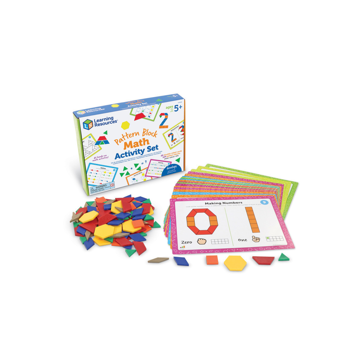 Discover the building blocks of kindergarten math skills with these hands-on shape activities! Learn about symmetry, patterning, fractions, and more through hands-on pattern block play. Includes 20 double-sided activity cards for hours of learning fun, as well as 124 shape pieces that support open-ended play!