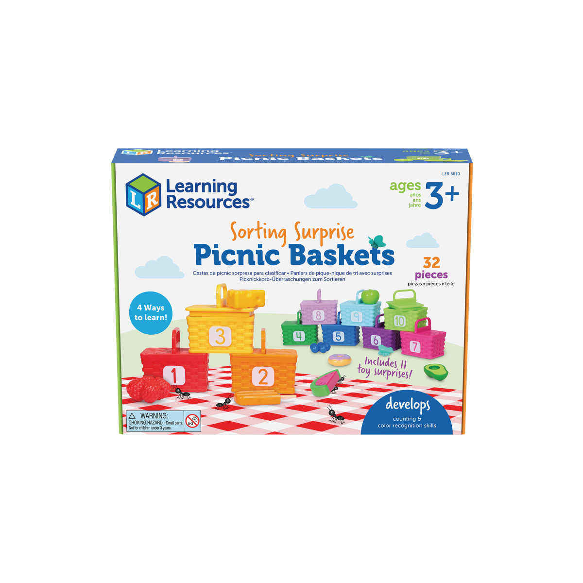 This picnic is packed with counting and color surprises! Kids discover 10 colorful food surprises hidden within the 10 picnic baskets of the Sorting Surprise Picnic Baskets set from Learning Resources.