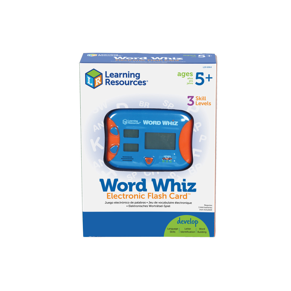 Build as many 3-, 4- and 5-letter words as you can in 60 seconds! Encourages children to practice word building as they combine beginning letters and blends with word families. Challenges children with three skill levels. Features handheld size, simple operation, immediate feedback and volume control. Measures 5"L x 4"H. Requires 3 AA batteries, not included. Age 5+/Grade K+.