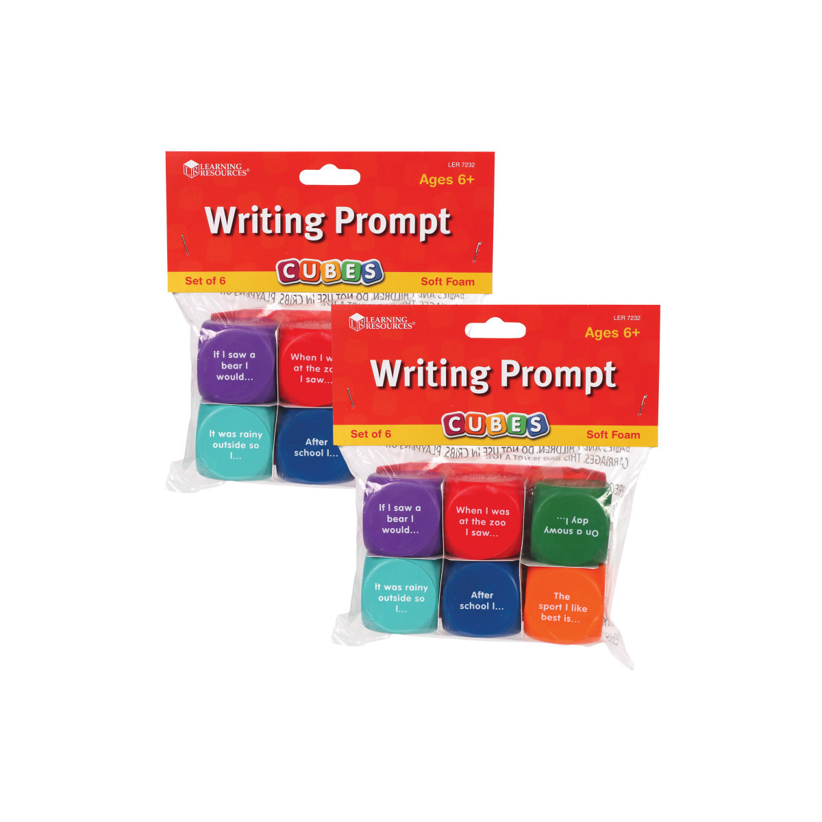Spark brainstorming and imagination with these Writing Prompt Cubes students can use in both creative storytelling and nonfiction writing activities. With different writing prompts on every side (36 prompts total), foam cubes offer a variety of ideas for individual or group writing projects. Cubes are quiet when rolled—perfect for centers. Activity Guide included. Cubes measure 1 5/8". Each set includes 6 cubes. Sold as 2 sets for a total of 12 cubes.