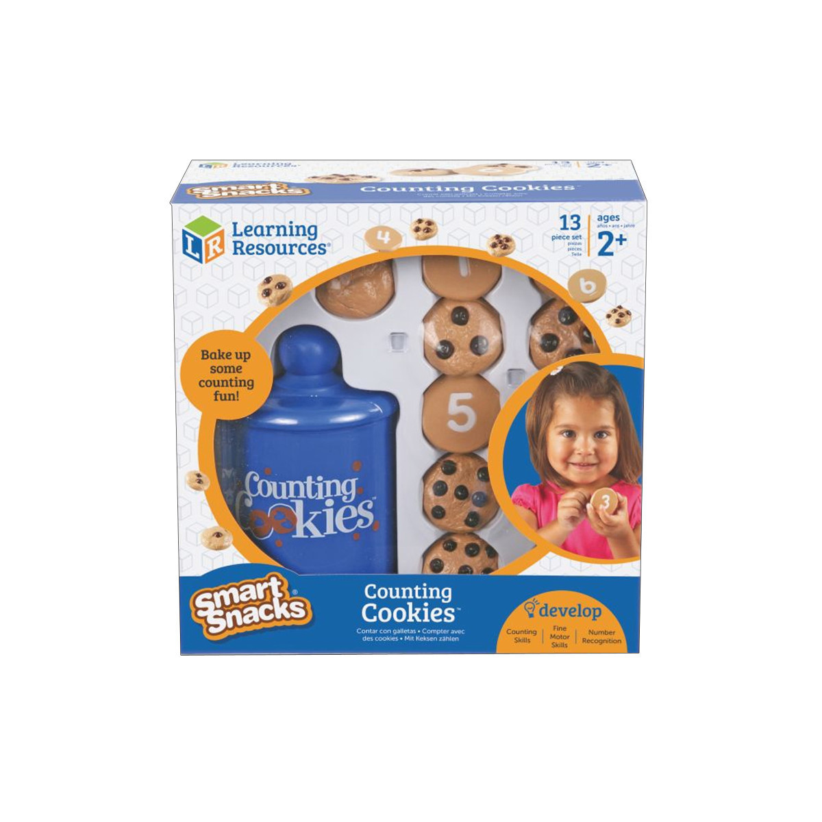A delicious way to learn! Children learn to recognize, count and compare numbers with soft, plastic Counting cookies. Cookies are numbered 0-10 on one side and the corresponding number of chocolate chips on the opposite side. Children can also engage their fine motor skills and hand eye coordination by picking up the cookie, removing the lid and placing it inside the jar. Includes 11 plastic cookies marked 0-10 and plastic jar with lid. Cookies measure 1.75" and jar measures 6.5"H. Age: 2+, Grades: Toddlers +.