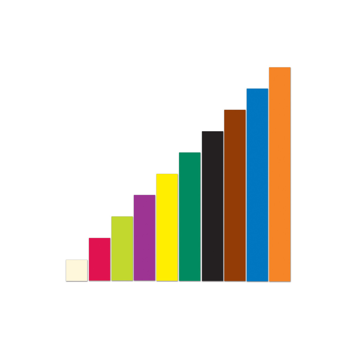 Magnetic Cuisenaire Rods®Use these jumbo versions on your whiteboard to model math concepts, including number sense, operations, measurement and early algebra. Add your own labels on the write & wipe surface. Largest piece measures 25 cm x 2.5 cm. Grades K+