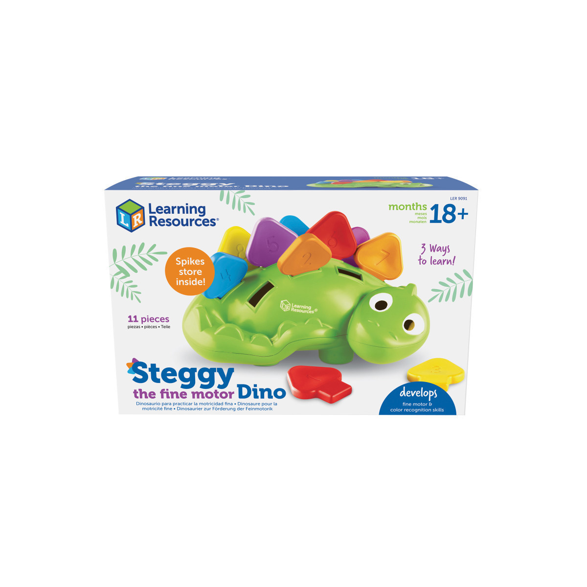 This prehistoric pal is ready for fine motor fun! Kids build the hand strength they need to succeed in school and beyond every time they play with Steggy the Fine Motor Dino from Learning Resources. The friendliest fine motor toy for toddlers, this easygoing dinosaur comes with 10 pinchable, pullable scales, whose indented surfaces make it easy for kids to build their pincer grasp, hand strength, and other essentials of fine motor skills development. Steggy's scales also come with a 3-in-1 learning surprise—in addition to building fine motor skills, scales also introduce kids to early color matching and number recognition skills thanks to their vibrant designs and 1-10 numbered surfaces. Count up the scales, sort them into warm and cool colors, and more—with Steggy the Fine Motor Dino, there are always multiple ways to learn. When the fine motor fun is finished for the day, Steggy's durable plastic scales wipe clean and fit inside for easy storage.