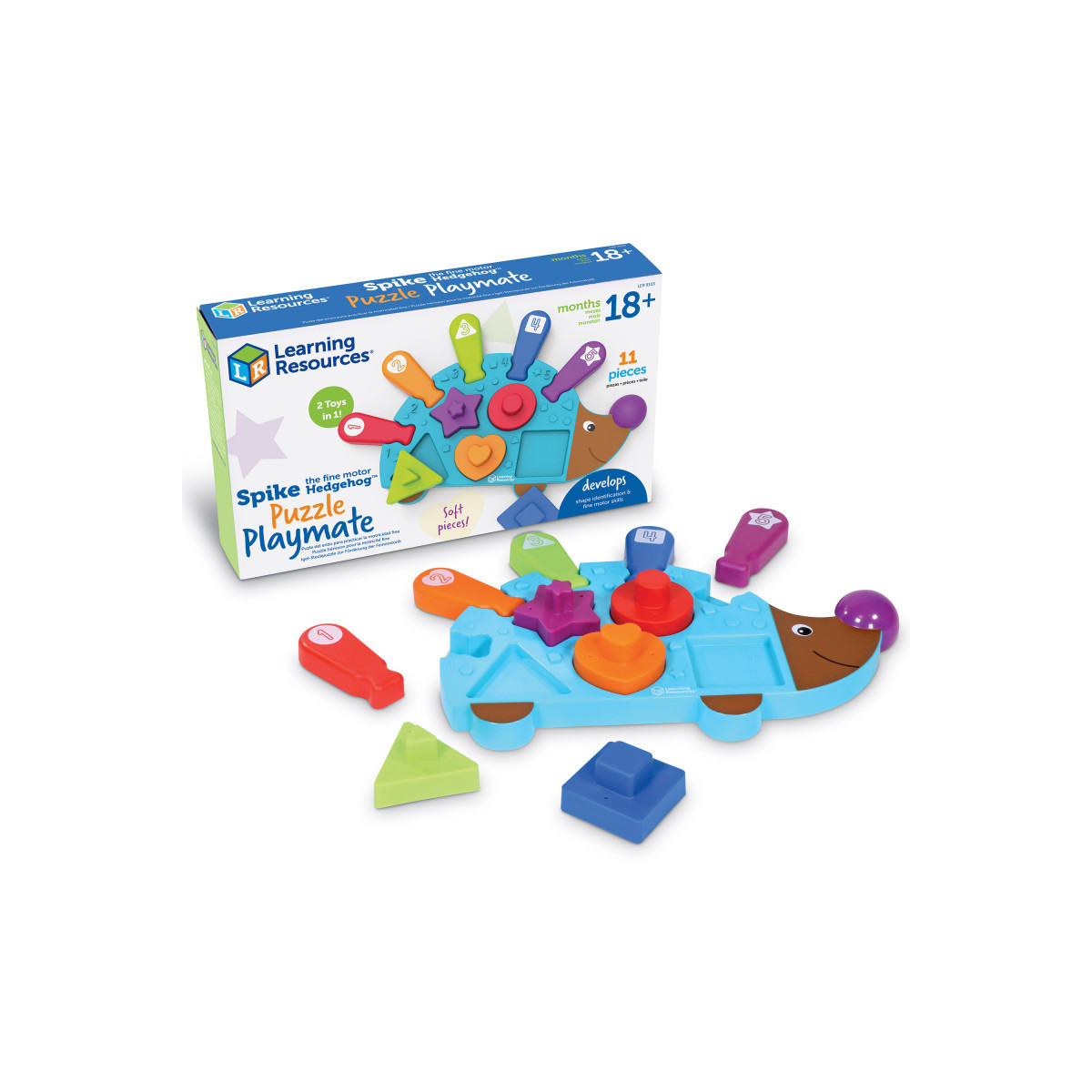 Spike the Fine Motor Hedgehog is back, and he's ready to play! The preschool fine motor fun never ends with the 2-in-1 shape sorter and puzzle play found in the Spike the Fine Motor Hedgehog Puzzle Playmate from Learning Resources. Inspired by our bestselling Spike the Fine Motor Hedgehog preschool toy, this take on fine motor fun finds kids building even more skills every time they play. The Spike the Fine Motor Hedgehog Puzzle Playmate comes with two distinct ways to play—sort and match the shape pieces, then explore Spike's pop-in, pop-out quills! As they play, kids will build 5 essential preschool skills—in addition to boosting their fine motor and early logic skills, kids will also strengthen their shape, color, and number recognition skills along the way! Sized just right for little hands, the pieces found in the Spike the Fine Motor Hedgehog Puzzle Playmate are durable and easy to clean—just wipe them down with a damp cloth after playtime is done! Whether you're learning in the classroom or through homeschooling, Spike's here to make preschool fun!