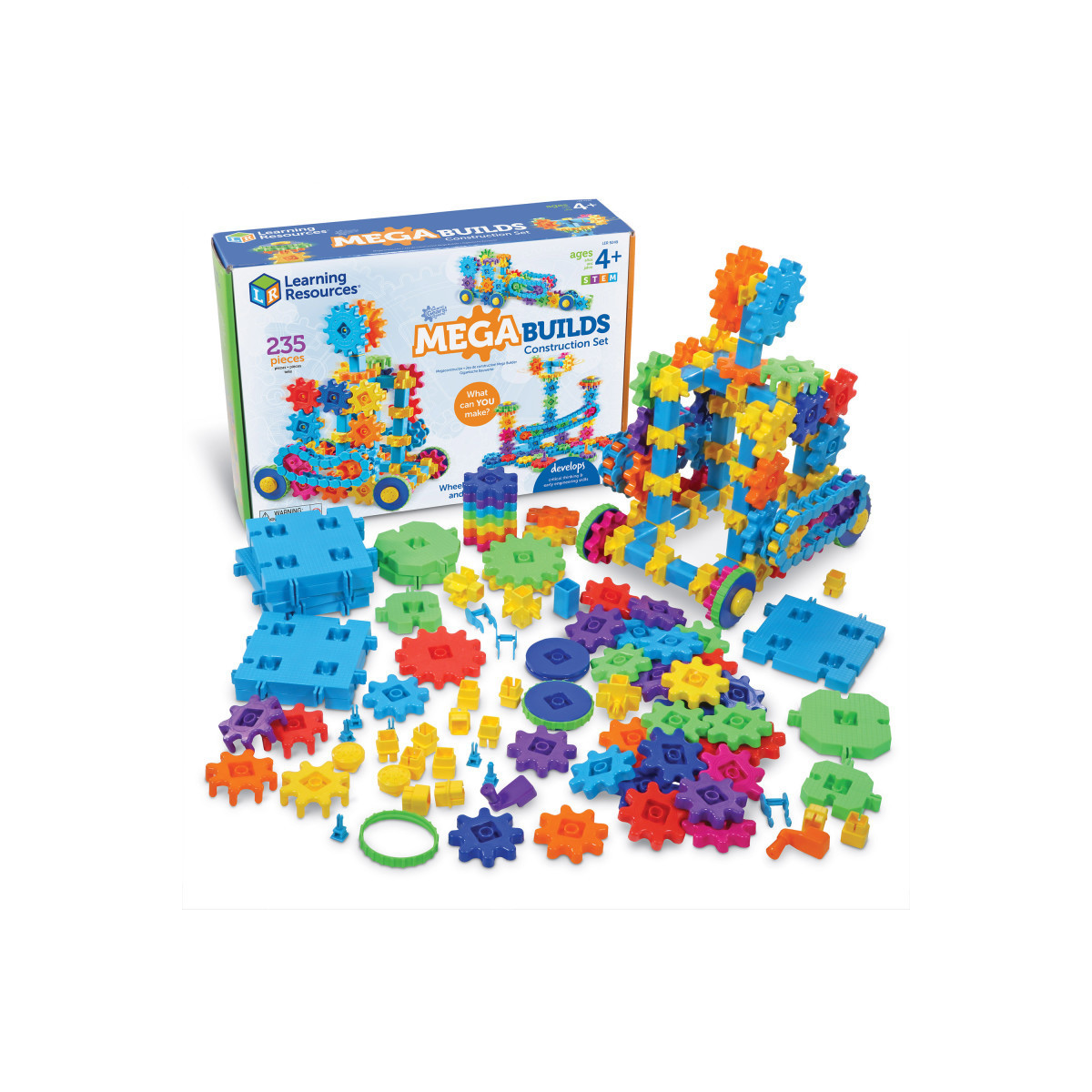 Bring your machine dreams to life with our biggest Gears! building set yet! Kids can engineer their own STEM creations with Gears! Gears! Gears! Mega Builds from Learning Resources. Clocking in at a massive 235 pieces, this STEM building set inspired by our best-selling Gears! Gears! Gears! series is the build-it-yourself toy kids need to create twisting, turning robots, cars, and machines! Kids can follow along with the included STEM Activity Guide, or use their imaginations to devise open-ended builds of their own—with 235 pieces, there's no shortage of design options! Every time they build a new Gears! creation, kids also boost their early engineering, critical thinking, and other essential STEM skills. All pieces included in Gears! Gears! Gears! Mega Builds work with all other Gears! building sets, so the possibilities are as fun as they are limitless! This set is also perfect for school STEM club and other group play!