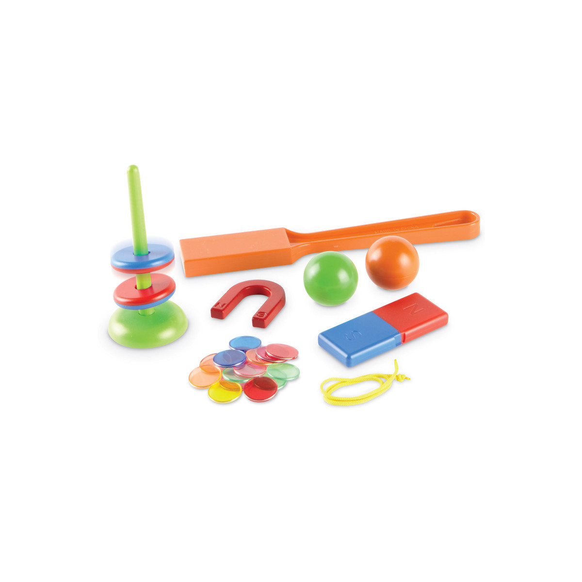 Attract early physics skills through fun magnet experiments! Kids experiment with the motion of magnetic attraction during STEM-filled play sessions with Magnet Movers, one of the hands-on STEM Explorers activity sets from Learning Resources. The set's included activity guide comes with 10 open-ended magnetism experiments that challenge kids to discover the unexpected throughout the world around them. Little scientists can interact with the set's colorful assortment of magnetic accessories, which include everything from a hand-held magnetic wand to a magnetic post with two magnetic rings to a bar magnet with labeled positive and negative ends. Whether they're learning lessons in polarity, testing the magnetism of common household objects, or "fishing" for paper clips with different magnetic "hooks," kids can test their newfound familiarity with the scientific method while building crucial critical thinking, problem-solving, and fine motor skills. STEM Explorers: Magnet Movers turns the world into your child's fun-filled laboratory.