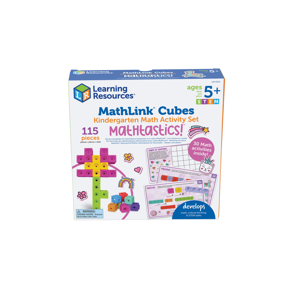 Kids learn addition, subtraction, patterning, and other kindergarten math skills with trendy puzzles, games, and building challenges. Includes 15 double-sided write-and-wipe activity cards and 100 MathLink Cubes in 10 cool colors.