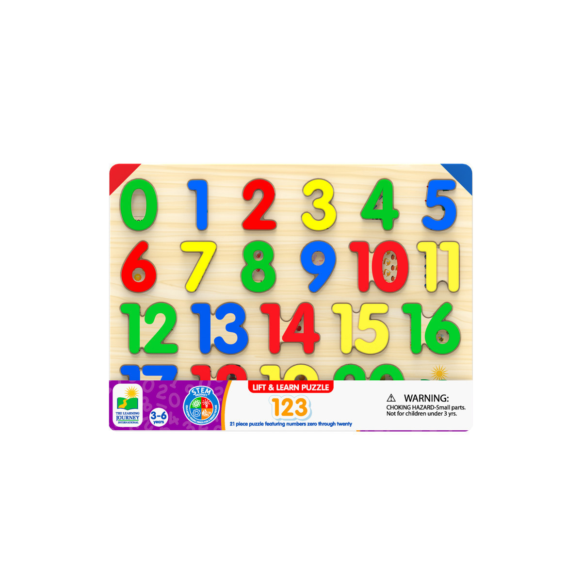 This colorful tray puzzle features the numbers 0-20. Your little one will learn their numbers and how to count to 20. There are pictures under each piece for them to count so they can practice! They will also develop different skill sets to prepare them for school, such as hand-eye coordination and problem solving. This puzzle measures 15" x 11". Ages 3+ years.