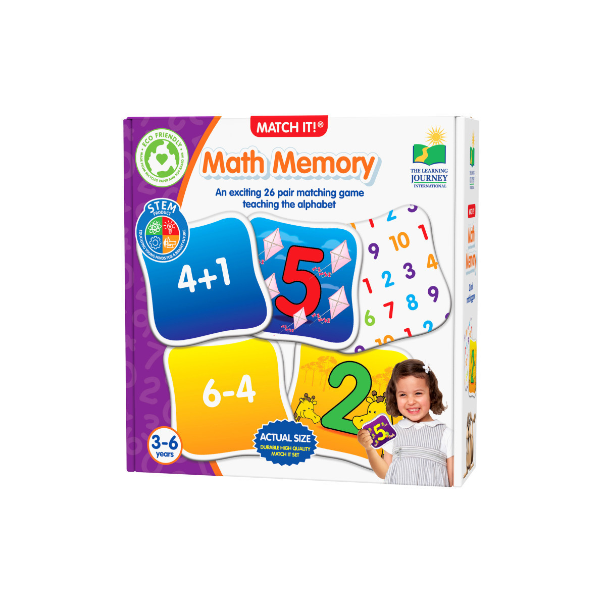 Match It! Mathematics Memory is a fun memory game that will challenge problem solving and develop memory skills in young children as they try to find a pair of matching cards that complete the equation. Bright, colorful illustrations help children learn basic addition and subtraction. Ages 3-6 years.