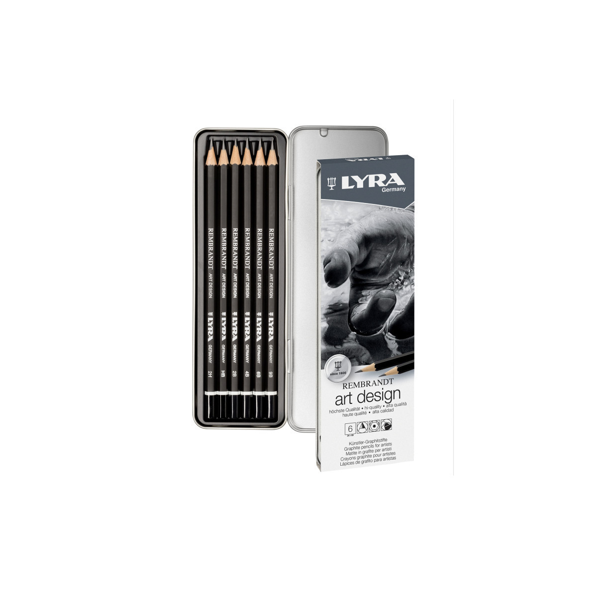 Introducing Lyra Rembrandt Art Design graphite pencils—Experience the unparalleled precision and richness of our pure graphite pencils, meticulously crafted for architects and artists. With expertly milled graphite that ensures a smooth, defined stroke, these pencils offer an array of 17 gradations, from deep, intense blacks to subtle, delicate greys. The luxurious softness of the gradations enhances the natural brilliance of the graphite, while the compact cores deliver impeccable, sharp points for flawless detail and definition in every stroke. Having spent over 200 years providing quality products to artists, schools & offices all over the world, the historic LYRA brand — founded by Johann Froescheis in Nuremberg in 1806 — is one of the oldest pencil companies in the world. Synonymous with innovation & quintessential German quality, Lyra is a well-respected name all over the world. Ever since it produced its first pencils, Lyra has stuck to strict rules to ensure the utmost quality — from the selection of raw materials right through to the manufacturing process. Includes 9B, 6B, 4B, 2B, HB, 2H.