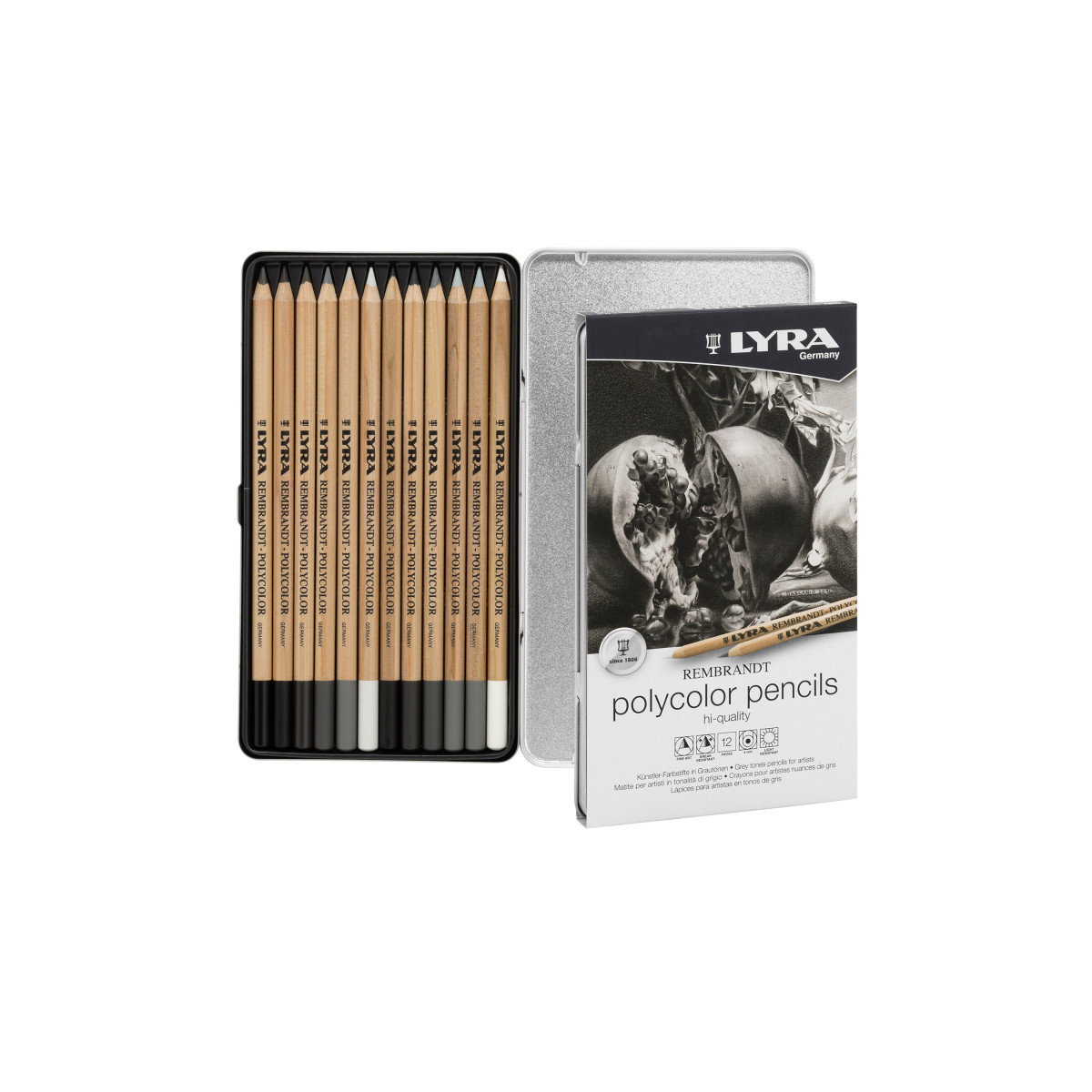 Lyra® Rembrandt Polycolor Colored Pencil Set Tin, Gray Tones, Assorted Colors, 12 Pieces