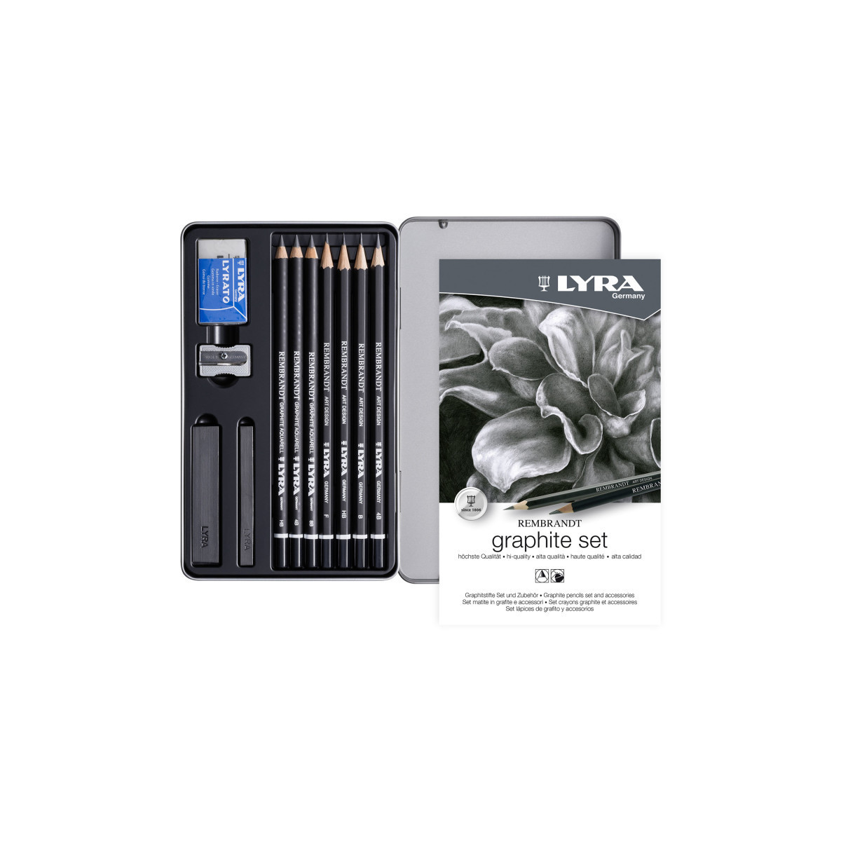 Introducing Lyra Rembrandt Monochrome professional graphite, charcoal, and natural tone pencils. Ideal for both sketching the foundations of a masterpiece and creating polished portraits and landscapes, this range is a must-have for discerning artists. The collection includes Sanguine, Sepia, and Pastel pencils available in both Dry and Oil varieties, expanding your creative possibilities. The Dry pencils are expertly balanced with pigment and binder, allowing for effortless blending and erasing, while the Oil pencils provide a rich, pasty stroke for bold, defined contrasts. With 5mm diameter leads packed with highly concentrated pigments, these pencils deliver deep, intense tones that make your artwork stand out. Having spent over 200 years providing quality products to artists, schools & offices all over the world, the historic LYRA brand — founded by Johann Froescheis in Nuremberg in 1806 — is one of the oldest pencil companies in the world. Synonymous with innovation & quintessential German quality, Lyra is a well-respected name all over the world. Ever since it produced its first pencils, Lyra has stuck to strict rules to ensure the utmost quality — from the selection of raw materials right through to the manufacturing process. Includes Art Design Pencils (HB, F, B, 4B), Aquarell Watercolor Pencils (HB, 4B, 8B), Graphite Sticks (4B, 6B), Lyrato Eraser and Sharpener.