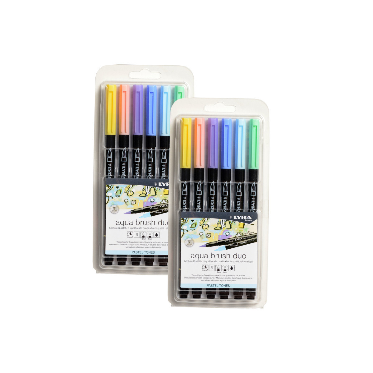 Lyra® Aqua Brush Duo Dual Tip Marker Set, Pastel Assorted Colors, 6 Per Set, 2 Sets