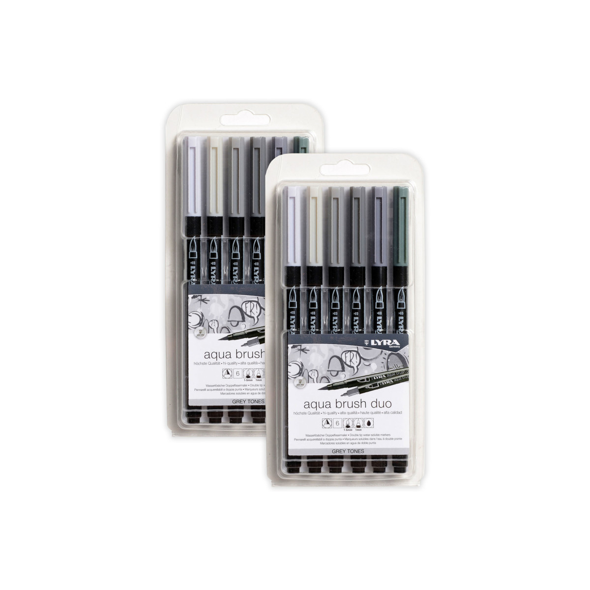 Lyra® Aqua Brush Duo Dual Tip Marker Set, Gray Assorted Colors, 6 Per Set, 2 Sets