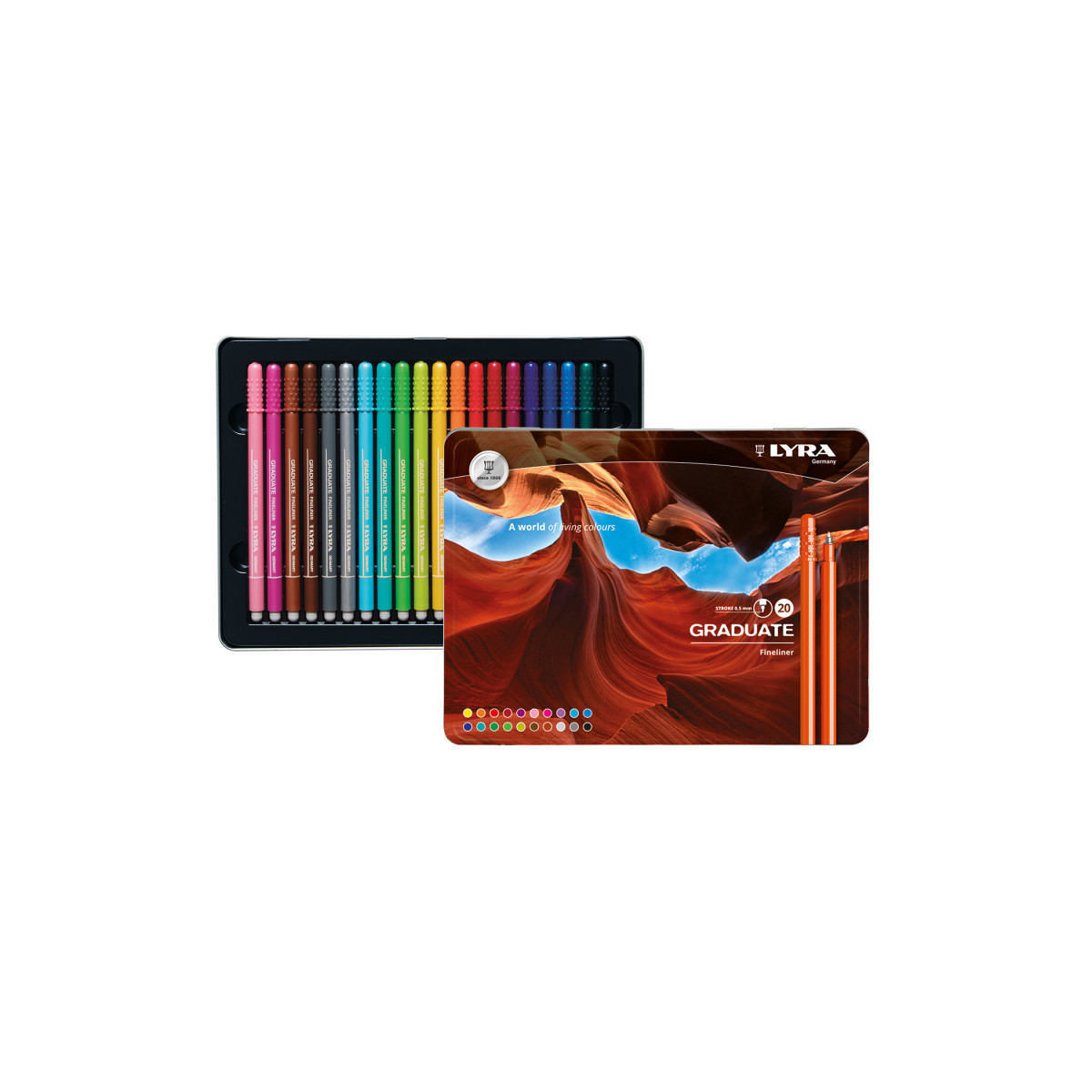 Lyra Graduate Fineliner Markers deliver sharp, precise lines that make detailed illustrations, hand lettering, and intricate designs come to life. Bursting with vibrant, fade-resistant ink, these markers empower students to create bold, eye-catching art that stands the test of time. With a comfortable grip and effortless control, they're the go-to tools for transforming classroom projects and elevating artistic skills at home. Having spent over 200 years providing quality products to artists, schools & offices all over the world, the historic LYRA brand — founded by Johann Froescheis in Nuremberg in 1806 — is one of the oldest pencil companies in the world. Synonymous with innovation & quintessential German quality, Lyra is a well-respected name all over the world.