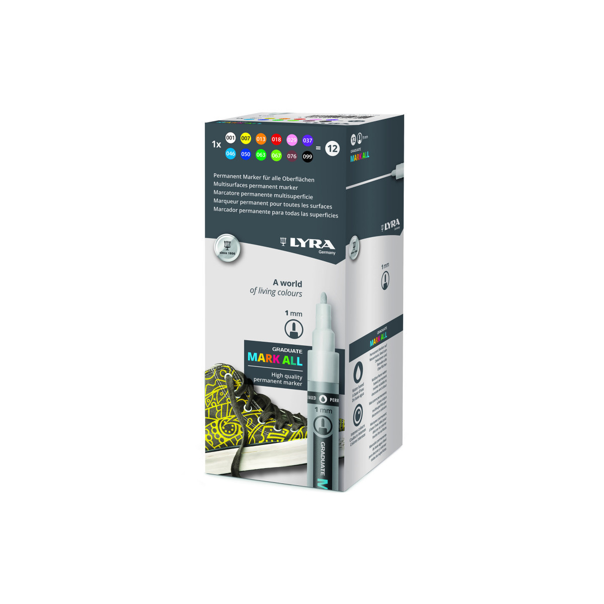 Introducing Lyra Graduate Mark All permanent markers—Vibrant, creative & inspiring markers feature high-quality fiber tips and water-based inks that let you draw on any surface, turning every creation into something truly unique. With a smooth texture and a brilliant matte finish, the quick-drying inks can be layered for endless possibilities and are water and light-resistant. Having spent over 200 years providing quality products to artists, schools & offices all over the world, the historic LYRA brand — founded by Johann Froescheis in Nuremberg in 1806 — is one of the oldest pencil companies in the world. Synonymous with innovation & quintessential German quality, Lyra is a well-respected name all over the world.