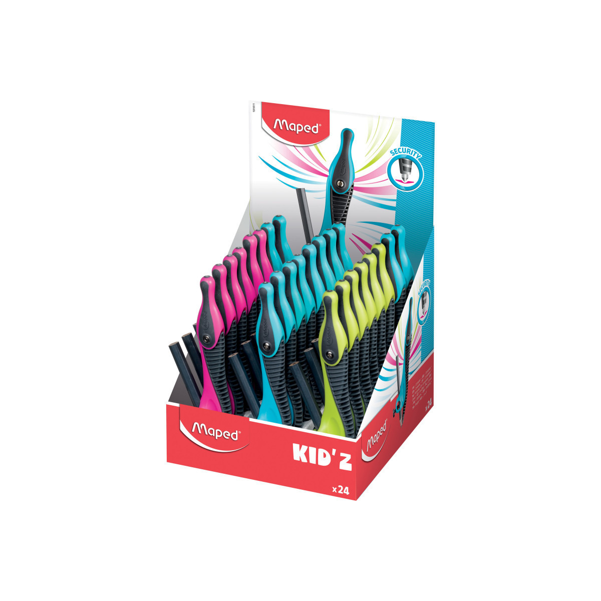Durable and fun, the Kid'Z Compass with Universal Holder features an ergonomically designed head and non-slip grip; perfect for small hands! Super blunt safety tip makes this compass suitable for students first learning about geometry. Universal Holder attachment works with included pencil and any other standard pencil or pen for drawing options. Sold as a pack of 24 in assorted colors Blue, Green or Pink (no color chcoie).