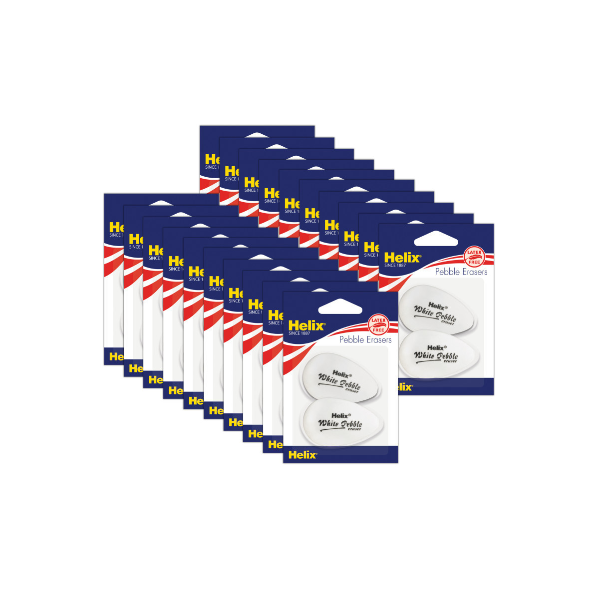 Ergonomically shaped Hi-Polymer Pebble erasers feature a curved body that is easy to hold! Broad flat surface quickly removes pigment from large areas, and the thin edge is great for detail work. Smooth material doesn't smear or smudge and leaves behind minimal eraser dust! Hi-polymer material is perfect for drawing, drafting and general use. Quickly removes graphite, charcoal & pastel from all types of paper. PVC, Latex and Phthalate free! Each pack includes 2 erasers. Sold as 20 packs for a total of 40 erasers.