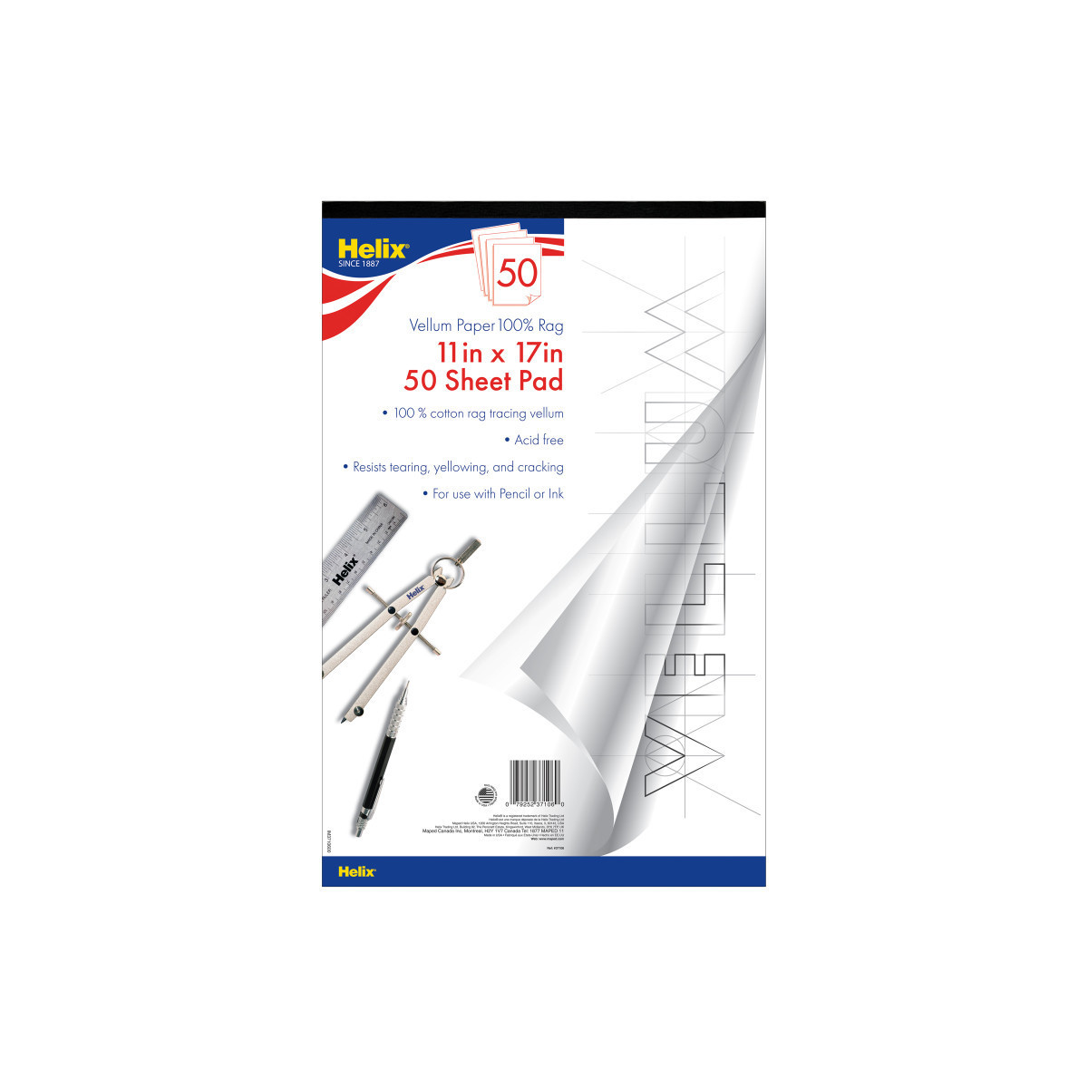 High-quality 16 lb. 11" x 17" Vellum pad is perfect for technical drawing, tracing, blueprints and more!