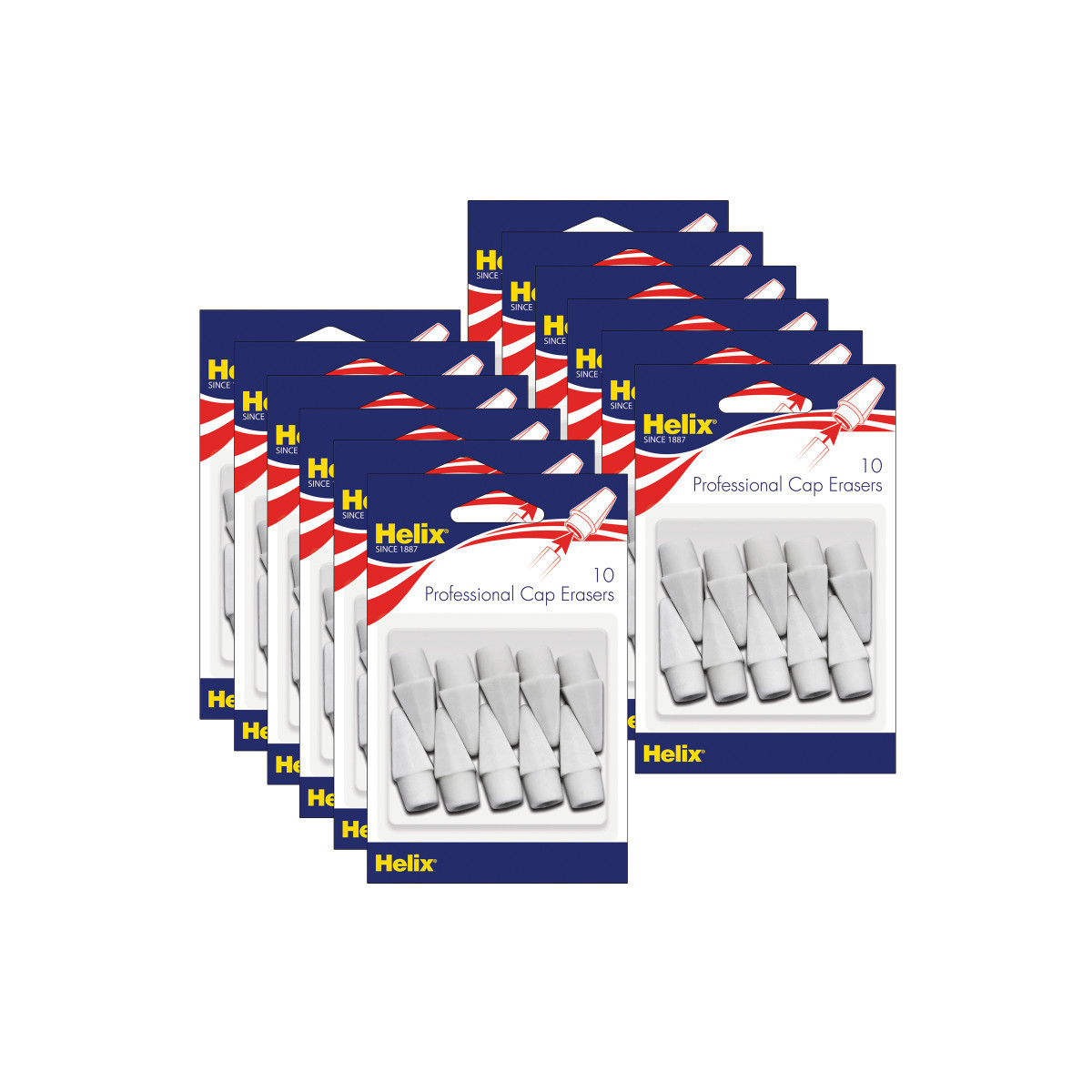 Professional quality, non-abrasive, oversized pencil cap erasers provide 2x the amount of use as a regular pencil cap eraser! High quality material leaves behind minimal eraser dust and no smears. Fits standard bore pencils, and most mechanical pencils too! PVC, Latex and Phthalate free. Each pack includes 10 erasers. Sold as 12 packs for a total of 120 erasers.