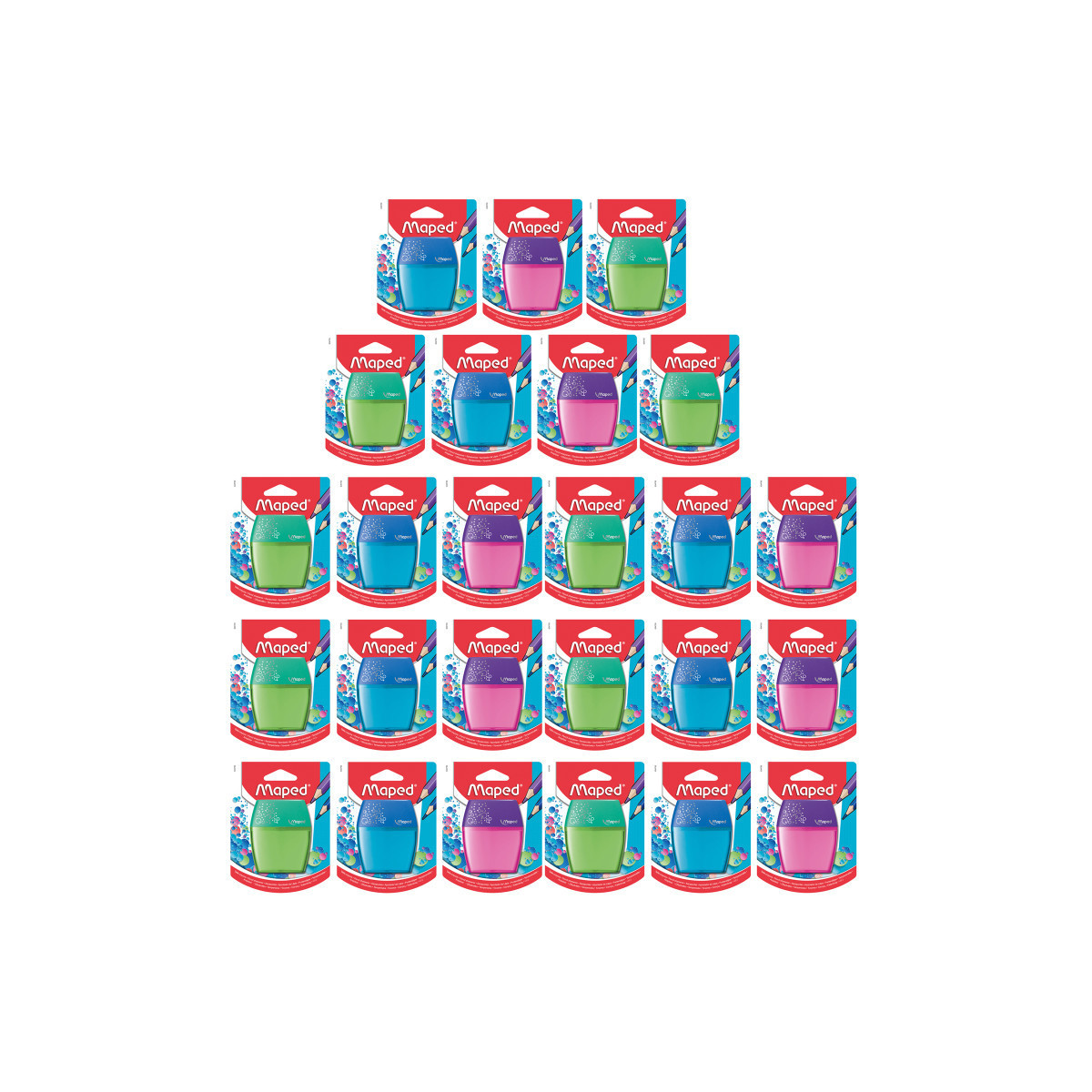 A classic - The Shaker is a very practical sharpener with a large integrated shavings canister! Wide body for an easy grip making this sharpener comfortable to use. Bright, transparent sharpener with shatter-resistant container. Available in assorted colors - no color choice upon ordering. Sold as a pack of 25 sharpeners.