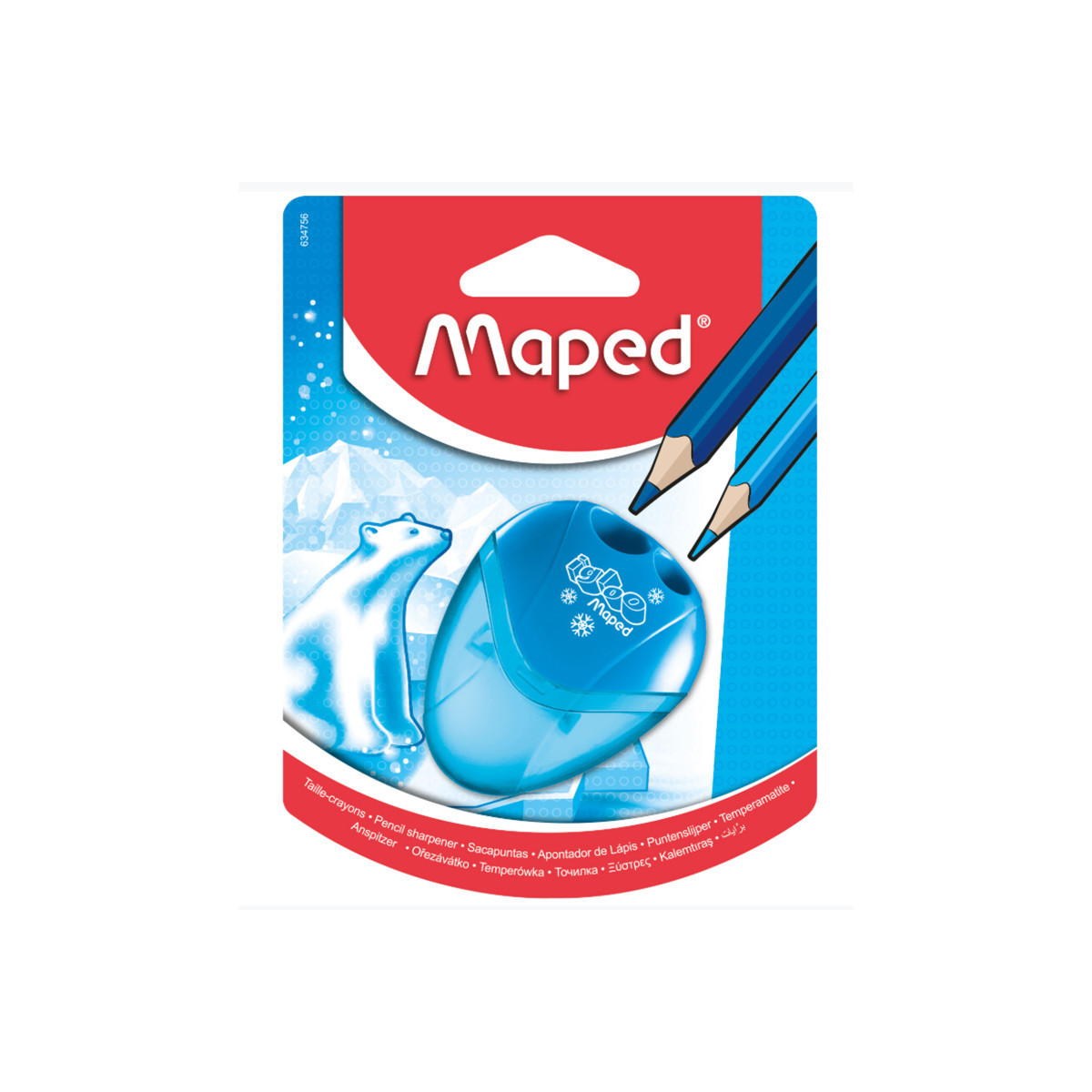 Keep your pencils sharp with the Maped I-Gloo 2 Hole Pencil Sharpener! Featuring 2 high quality steel blades, this classic sharpener makes it easy to sharpen any standard or jumbo sized pencils to a precise tip. The ergonomic design fits easily in your hand for a solid hold during sharpening, and the integrated canister keeps shavings trapped. Transparent, shatter resistant construction makes it easy to see when you have to empty the integrated shavings canister. Sold in assorted colors Blue, Green or Pink (no color choice).