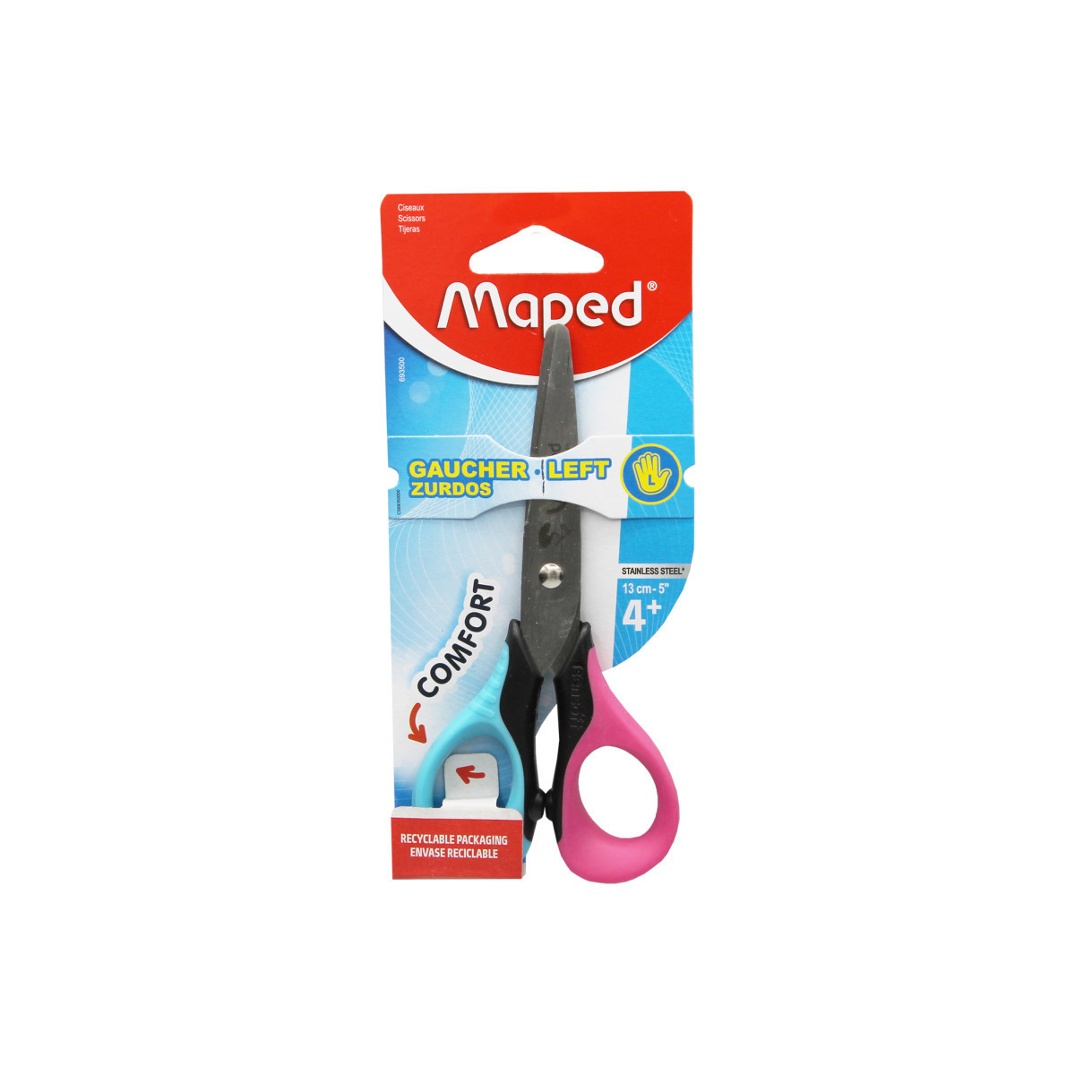 Specifically designed for left-handed use, Maped Sensoft Left-Handed Scissors are truly mirrored with reversed blades for easy visibility and specifically designed ergonomics.