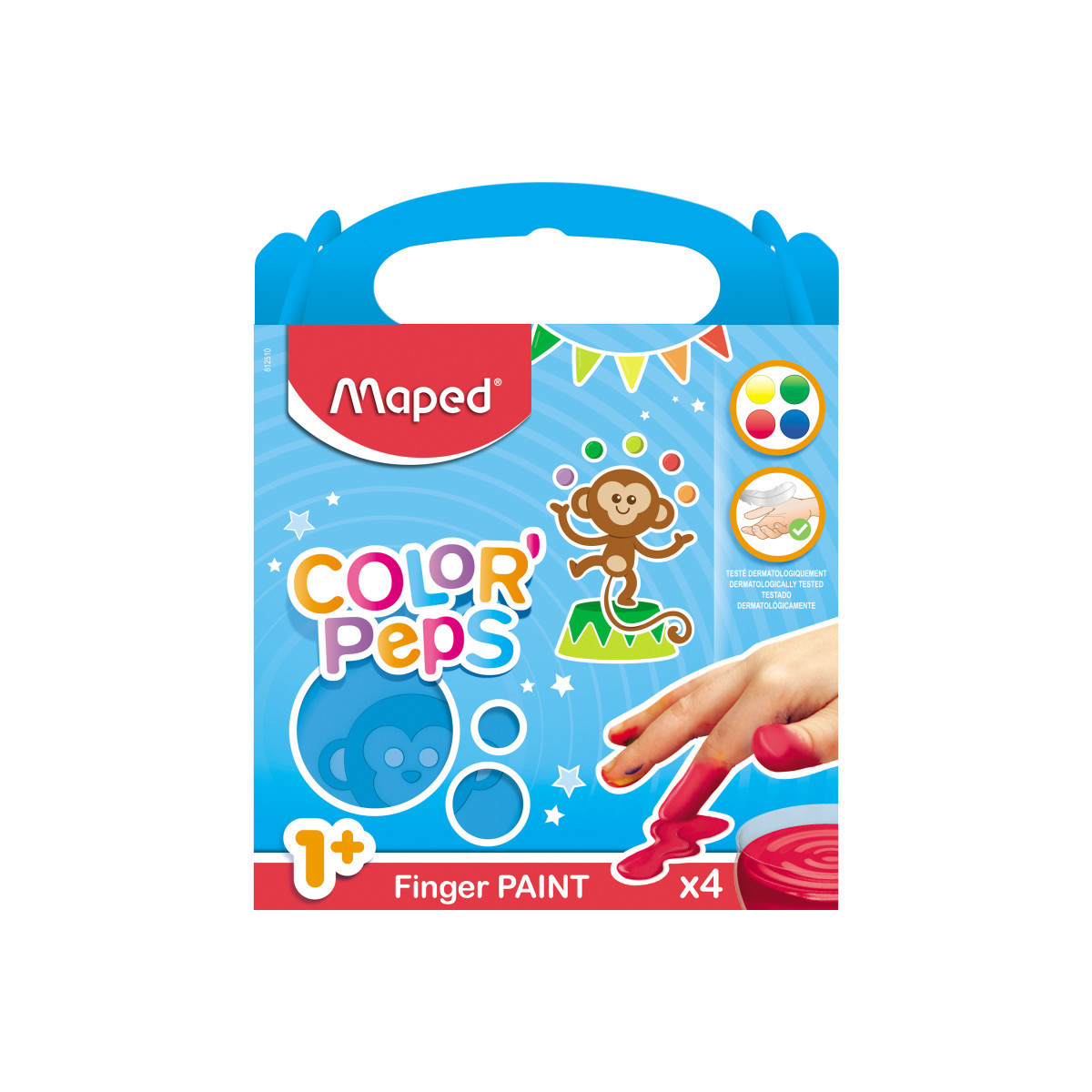 Maped My First Finger Paint is the perfect product for young artists! Perfectly suited for children over 1+, this ready-to-use finger paint is super vivid and smooth - just open the 3oz pots and start painting! The 4 ultra-bright colors (yellow, green, red, and blue) lay down smooth and are easy to blend, and the washable paint makes cleanup a snap when you're done painting! Viscous paints have great coverage power and work will all common types of paper. Resealable pots are easy to store in the included cardboard pouch!