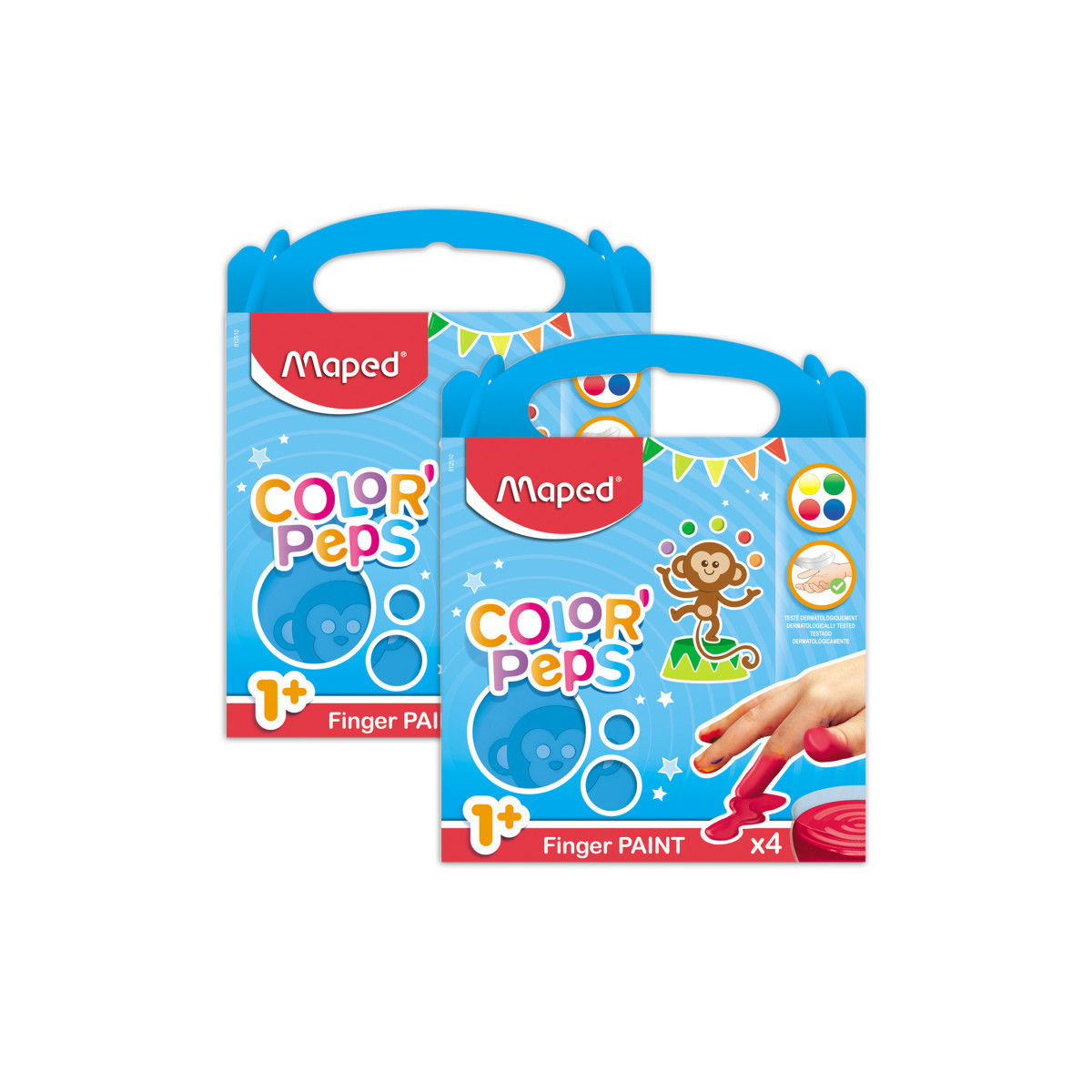 Maped My First Finger Paint is the perfect product for young artists! Perfectly suited for children over 1+, this ready-to-use finger paint is super vivid and smooth - just open the 3oz pots and start painting! The 4 ultra-bright colors (yellow, green, red, and blue) lay down smooth and are easy to blend, and the washable paint makes cleanup a snap when you're done painting! Viscous paints have great coverage power and work will all common types of paper. Resealable pots are easy to store in the included cardboard pouch! Each pack includes 4 paints. Sold as 2 packs for a total of 8 paints.